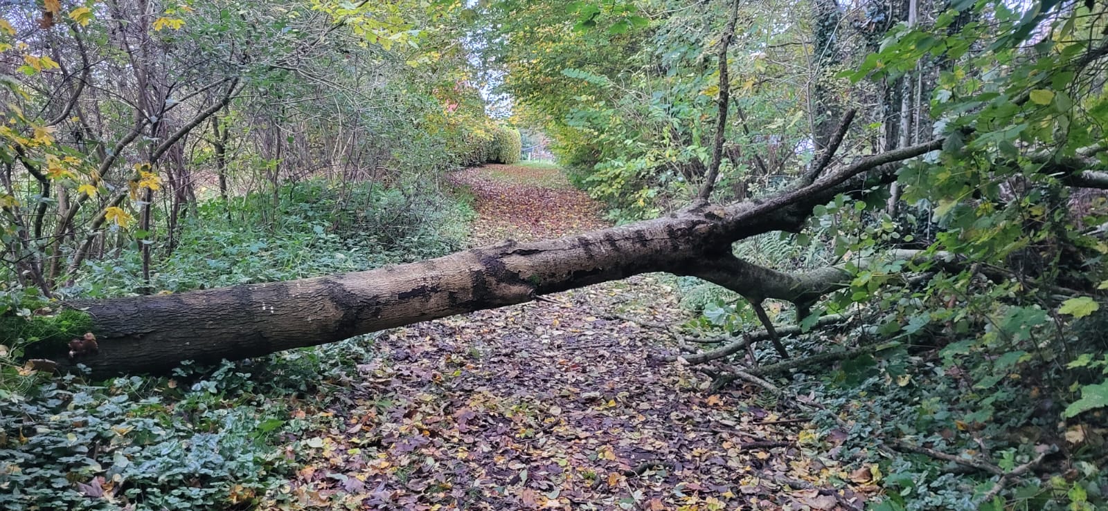 Unser Bild indes ist entstanden auf der fußläufigen Verbindung zwischen Klappholzer Weg und Freizeitgelände Paleg. Wenn hier vorübergehend Spaziergänger nicht durchkommen, ist das weder gefährlich noch ein Notfall.