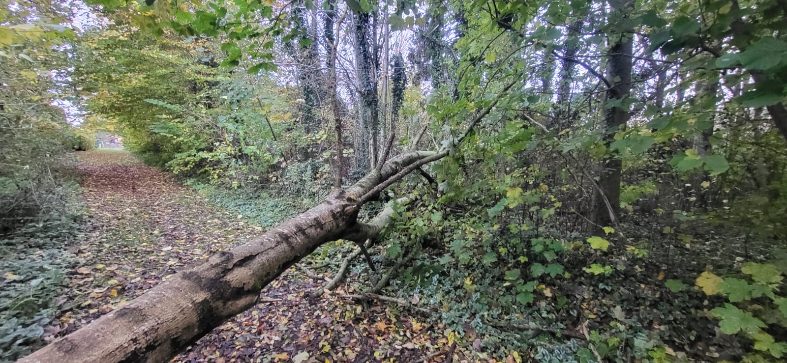 Dieser Baum ist nicht etwa während des letzten Herbststurms auf die Seite gegangen, sondern erst vor wenigen Tagen, weil er rott war und im weichen Untergrund stand. Warum zeigen wir ihn?