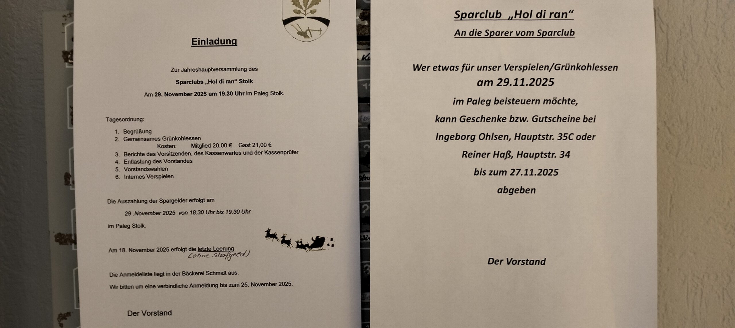 Anmeldung Jahreshauptversammlung Sparclub