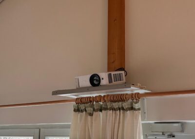 Die neueste Anschaffung der Gemeinde ist fertig installiert: ein Beamer im Vereinshaus Paleg. Vorbei ist die Zeit, als noch alle Fenster mit Decken zugehängt werden mussten, wenn man matte Bilder an der Wand sehen wollte.