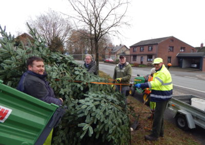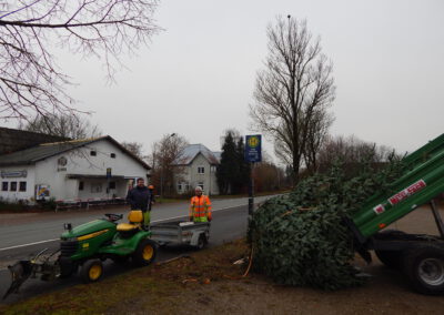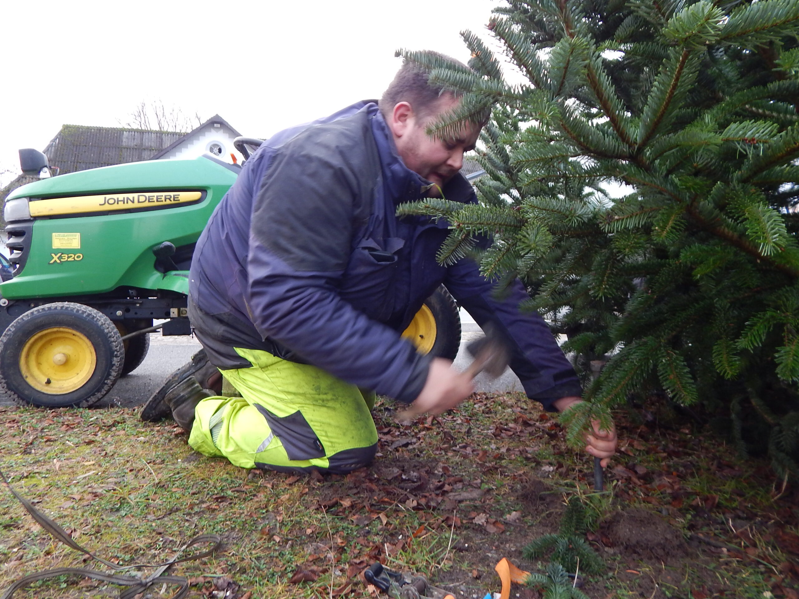 Den standfest in der Erde versenkten und verkeilten sowie gegen Winddruck abgespannten Baum zeigen wir nicht; dieser Anblick soll erst morgen Mittag möglich sein, wenn er geschmückt ist und die Lichter leuchten. Wer dann nicht da sein kann, sieht die Bilder dieser Dorfaktion geplant am Montag auf diesem Kanal.
