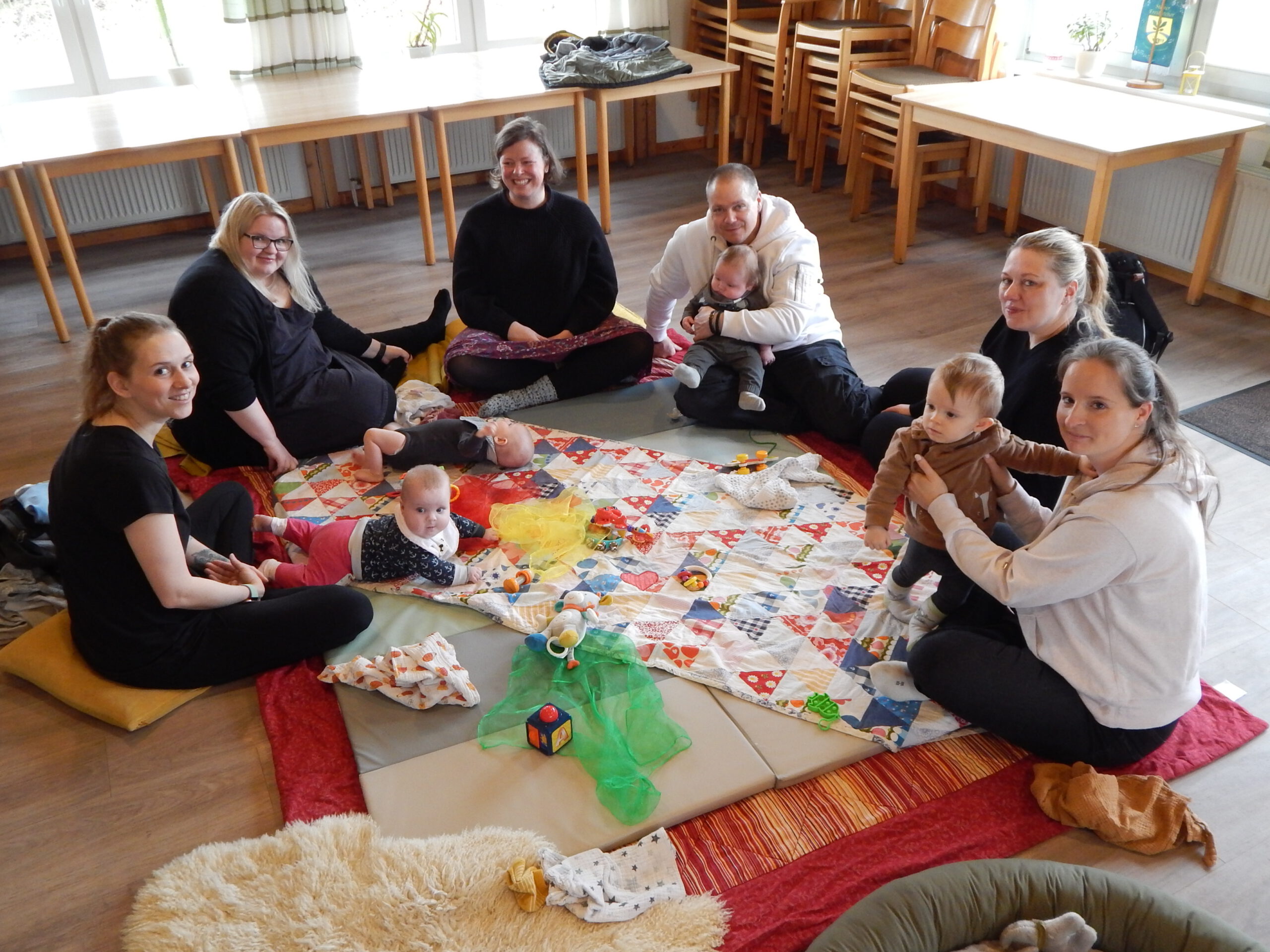 So sah es in dieser Woche am Donnerstag im Vereinshaus Paleg aus. Jeden Donnerstag treffen sich dort Babys mit ihren Müttern, Vätern (nicht auf dem Foto auch eine Oma) mit einer Hebamme und genießen eine kuschelige Atmosphäre mit informativem Gedankenaustausch unter den Erwachsenen.