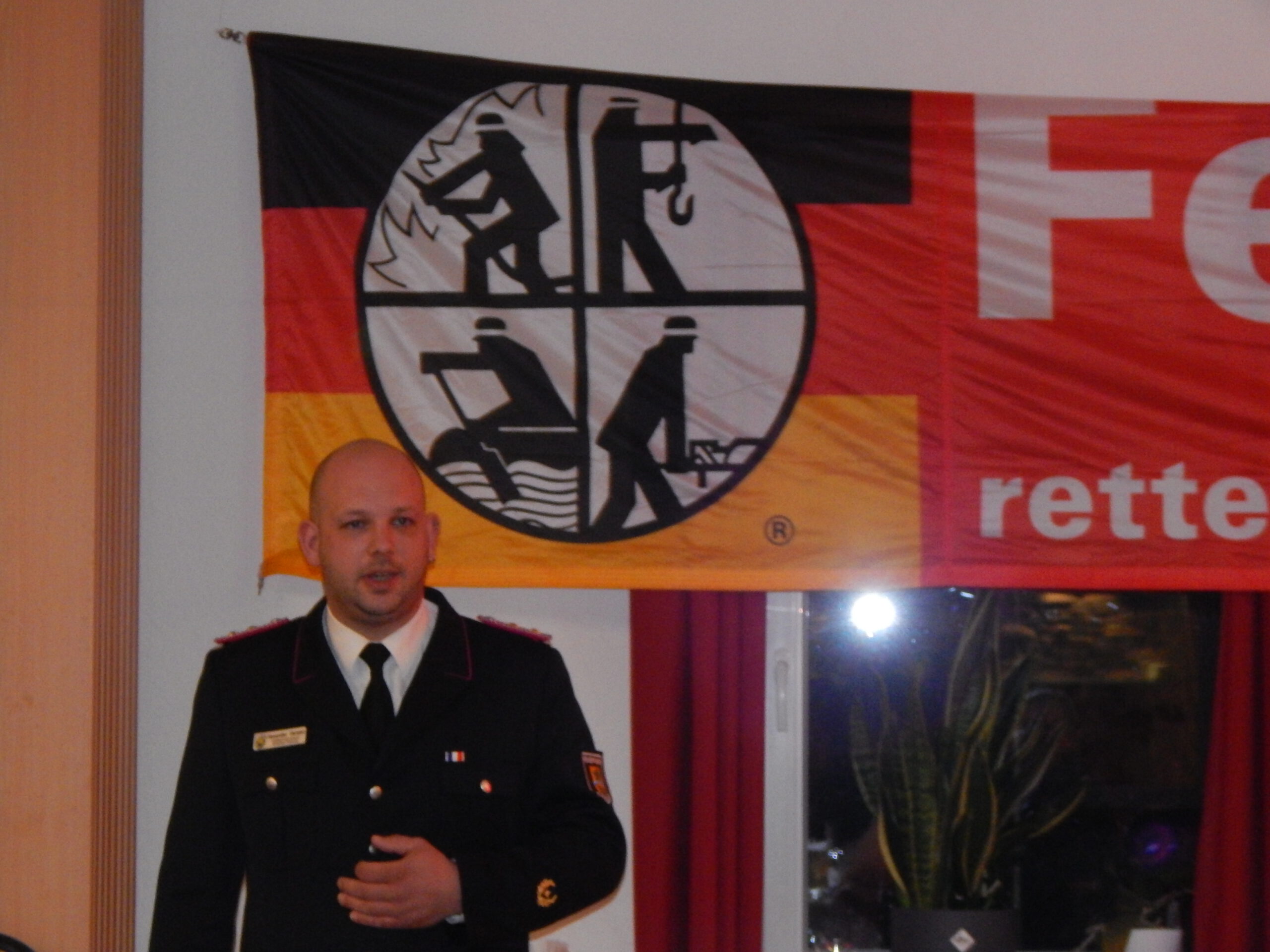 Amtswehrführer Björn Wilke überbrachte die Grüße von acht anwesenden Feuerwehren und fand ein Fest wie dieses „genau richtig“ für das persönliche Kennenlernen und den Zusammenhalt unter Wehren in größerem Umkreis, die bei Schadensfällen immer häufiger miteinander arbeiten müssten.