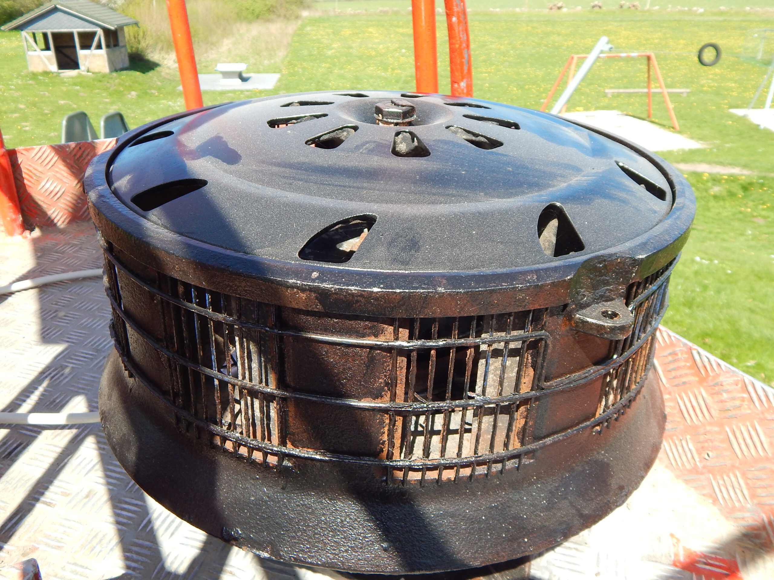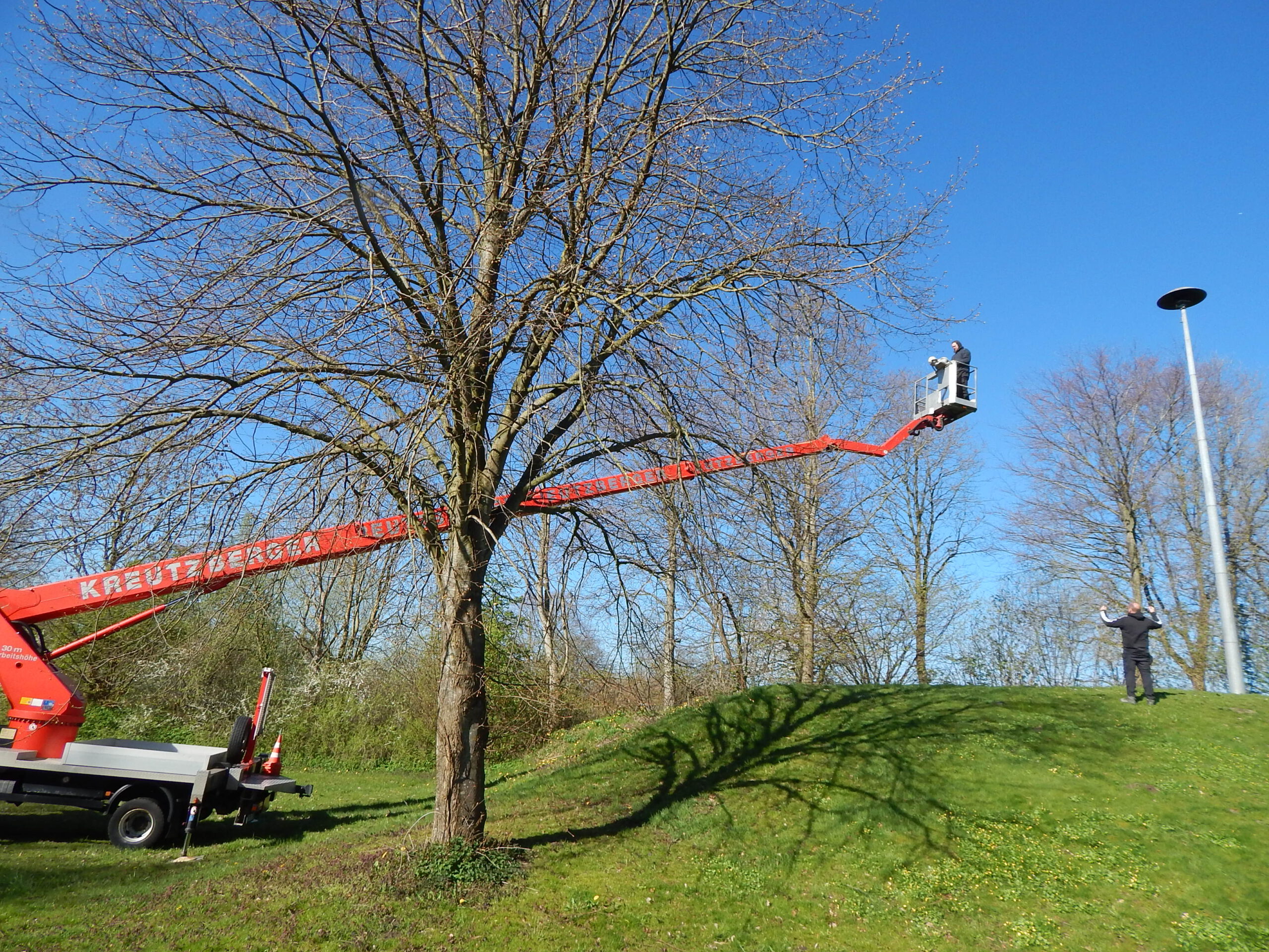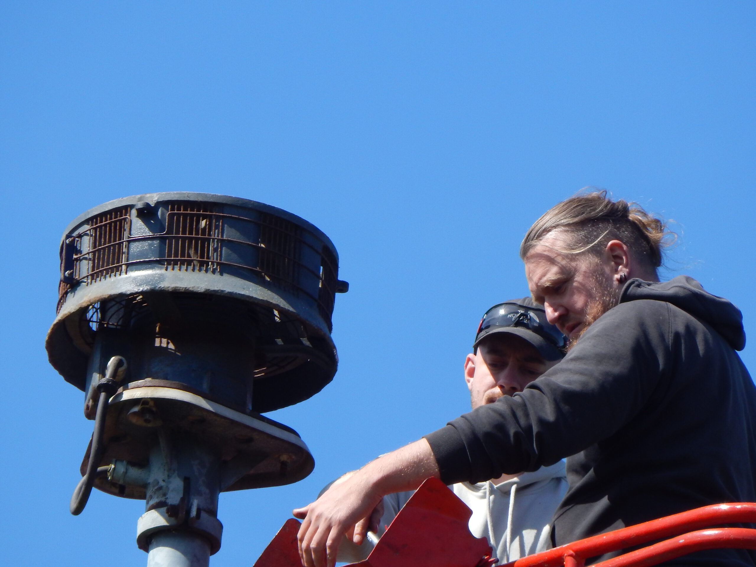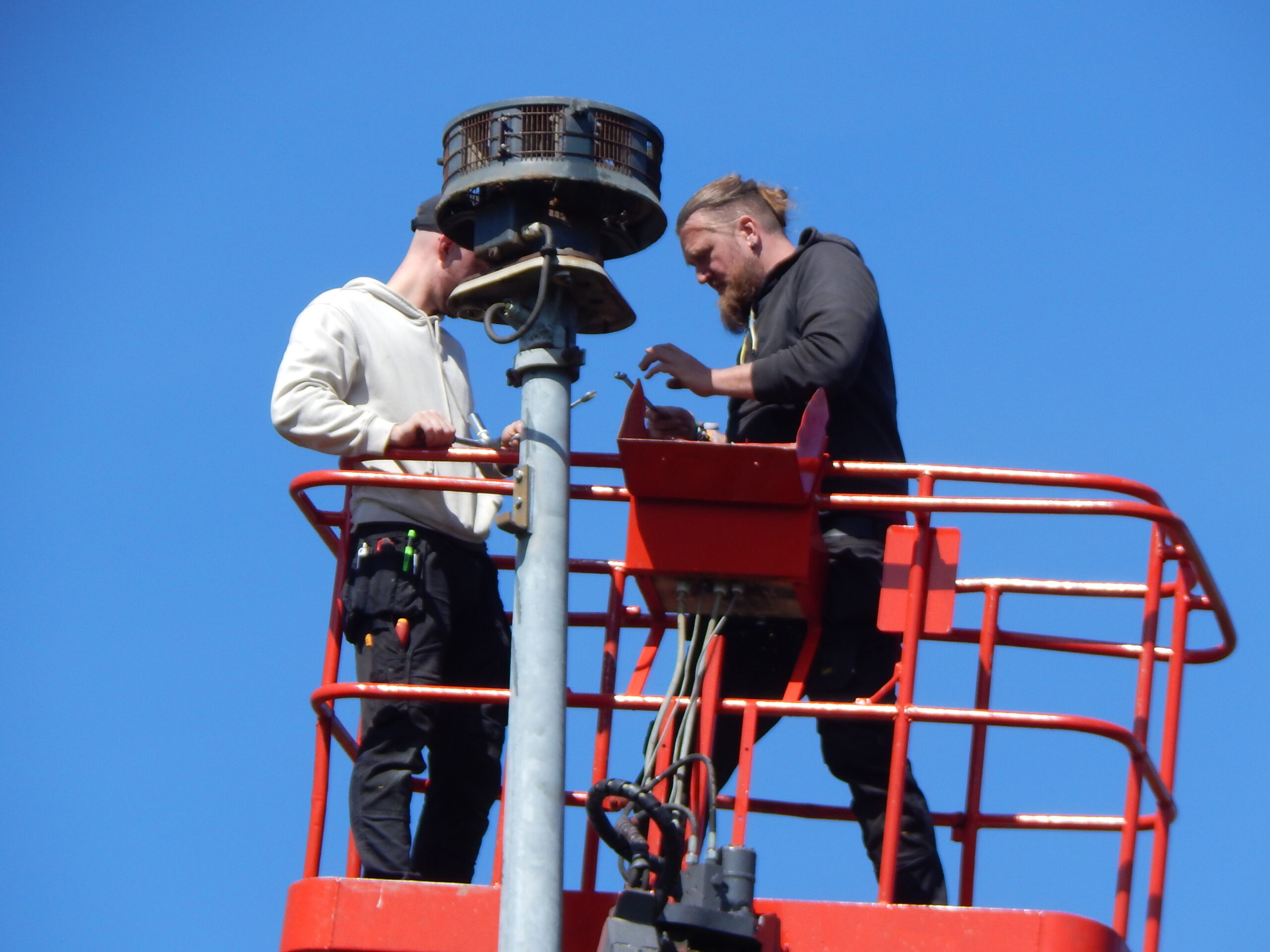 Eine erste Überprüfung des Schadens ergab schnell den altersbedingten Fehler. Damit gehört das bisherige Gerücht, ein ständig auf dem Sirenenmast gesichteter Specht könnte Wichtiges zerhackt haben, ins Reich der Phantasie.