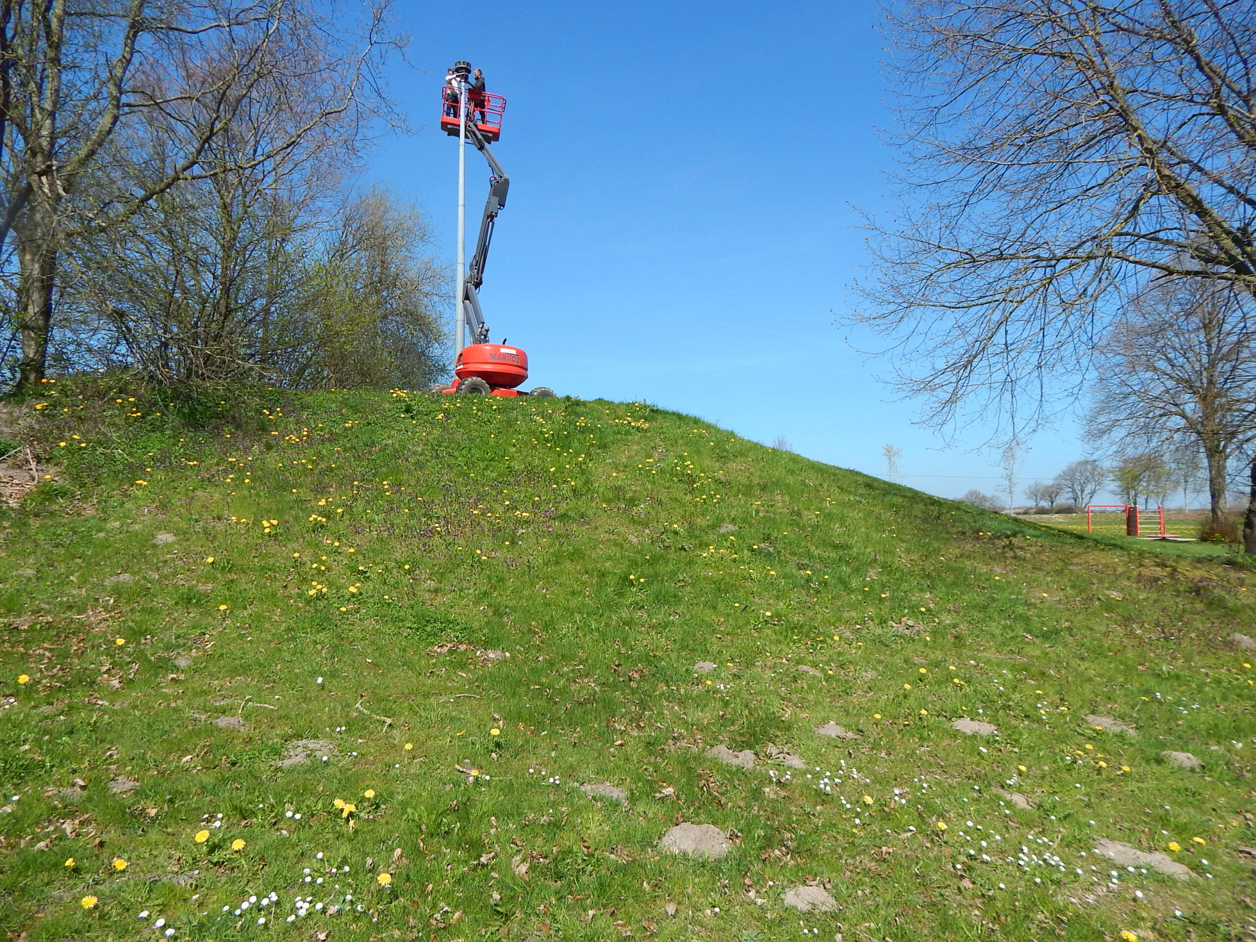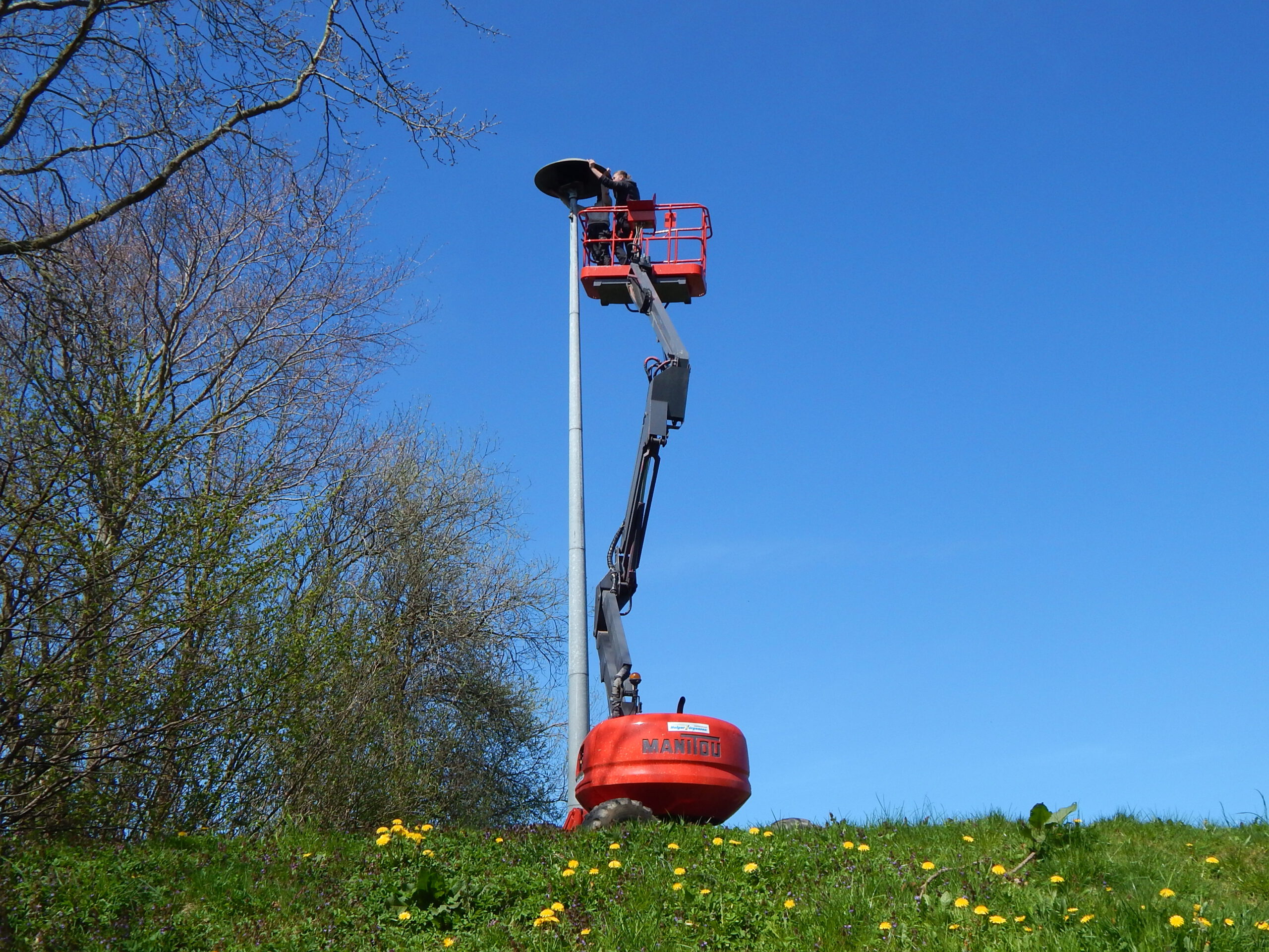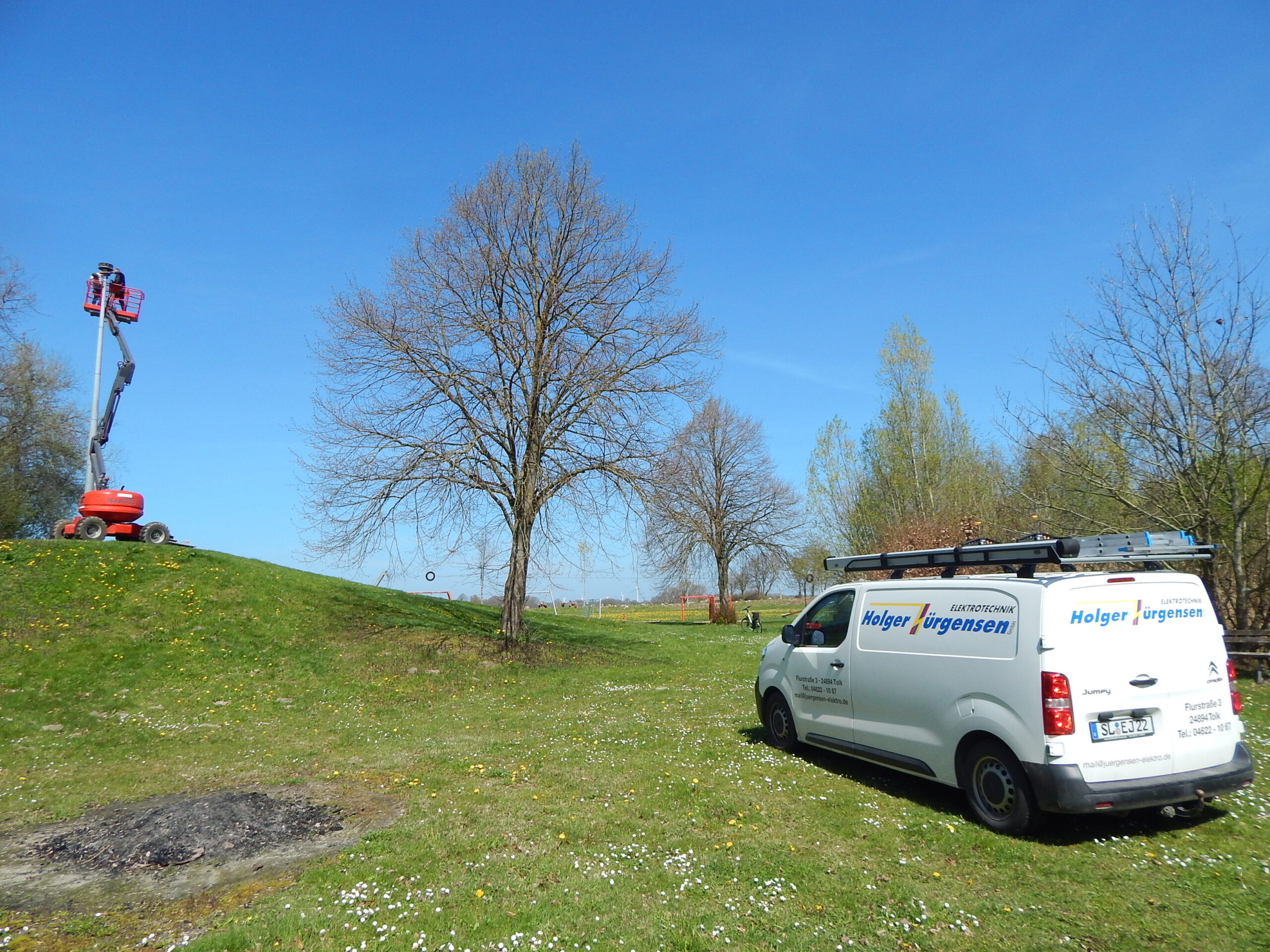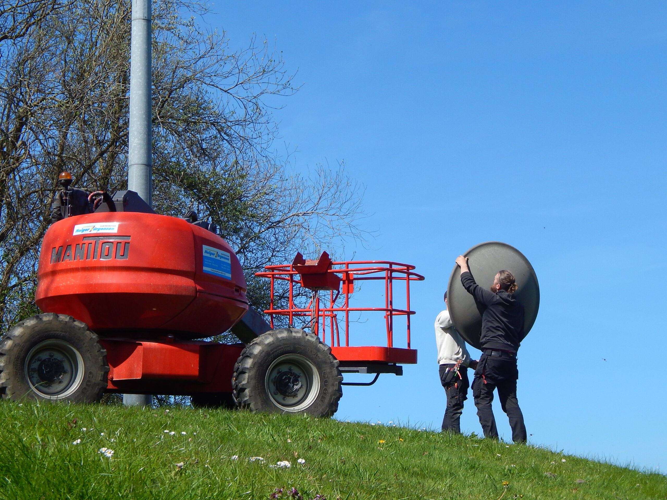 Unsere Fotos beweisen allerdings: Schon am Dienstag hätte eine andere Sirene installiert werden sollen; aber das gegen den Willen des Elektro-Chefs gelieferte Fahrzeug erwies sich als ungeeignet für die Höhe des Sirenenmotors, liefert hingegen uns zwei Fotomotive der besonderen Art.