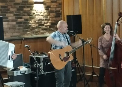 Se speelden bekannte un eegene Melodien – ümmer mit sülvst maakde Texte op Platt, de sick op unse Region betrecken deen. Dat hett de Lüüd bannig veel Spoß bröcht.