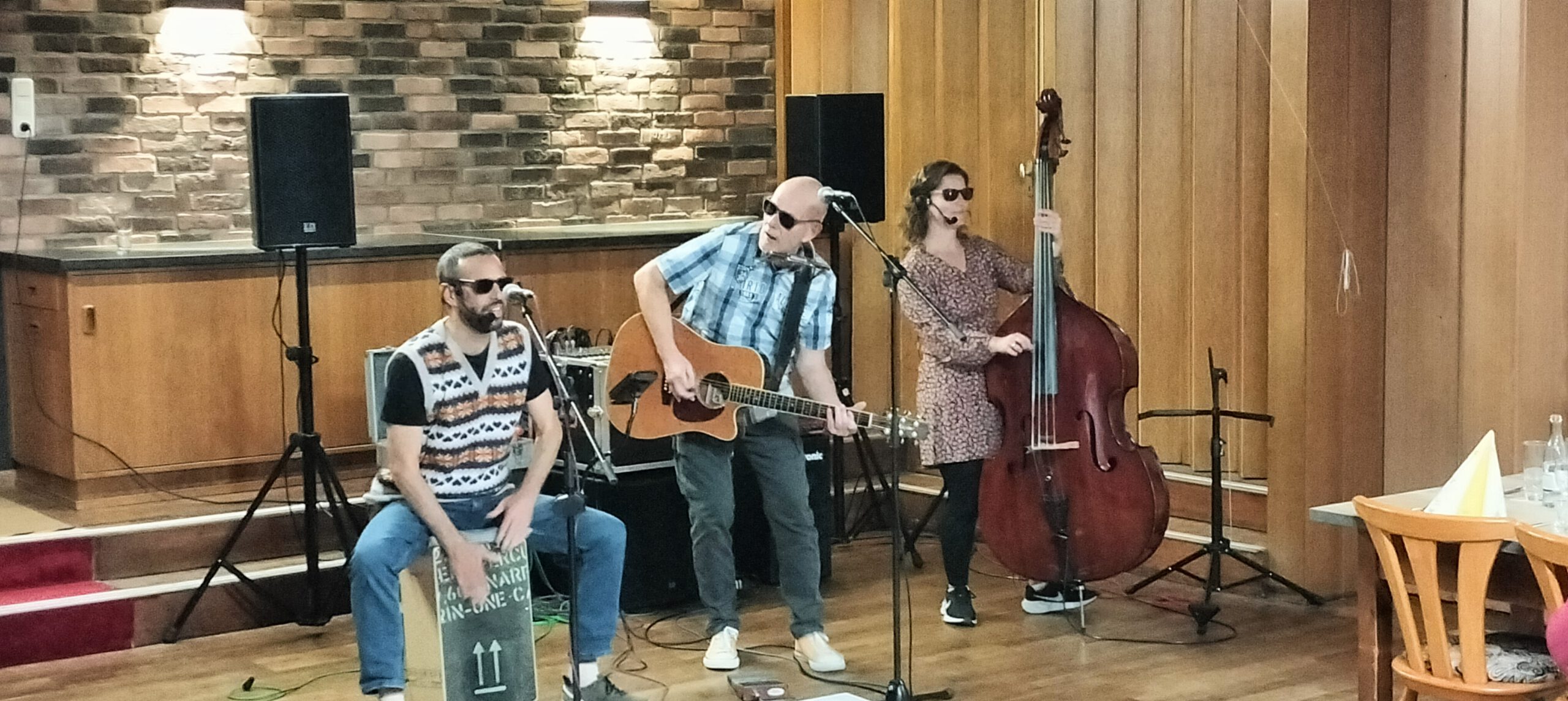 Dorto keemen Annett Ingwersen, Thomas Andersen un Hauke Carstensen vun de „Jemmerkant“ nah unse Krog „Zum goldenen Stern“. De dree Musikers nenn´ sick „Huulbessen“ (dat heet op Hochdüütsch „Staubsauger“).
