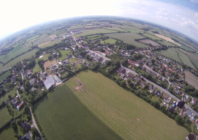 Weil die Karte bestehende Radrouten zeigen soll, hat der Stolker Johannes Jessen die Rundtour zu den Gräbern von 1850 eingearbeitet. Völlig überstürzt sollte unsere Redaktion ein Foto von Stolk liefern. An herbstgrauen Tagen war kein ansprechendes Motiv abzulichten, und so kam das hier gezeigte Luftbild von Oberstolk gen Westen auf die Tafel.
