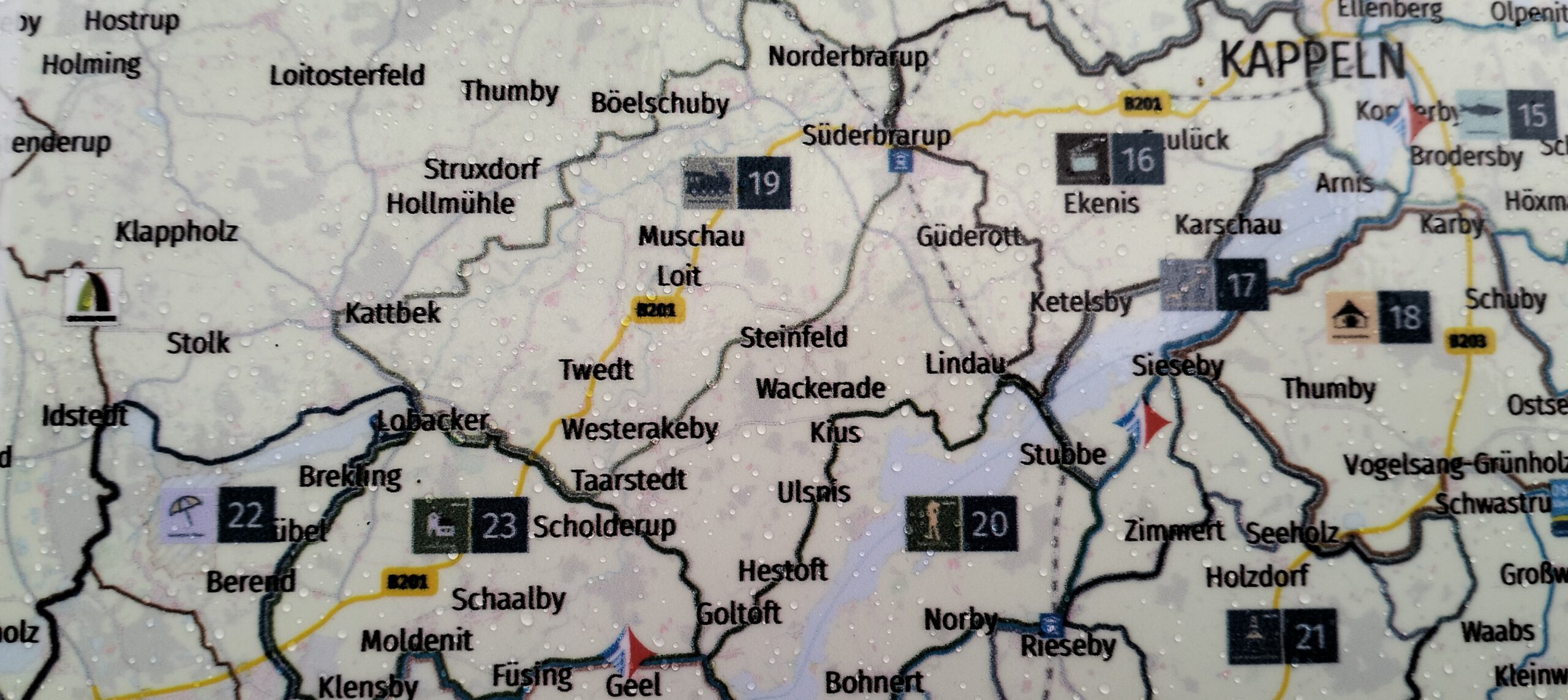 Im Bild davor zeigen wir, was die Tourismusgesellschaft darüber platziert hat: Ob das den Böklundern gefällt? Die Gemeinde Stolk hat das nicht fabriziert – wir haben keine Schuld.