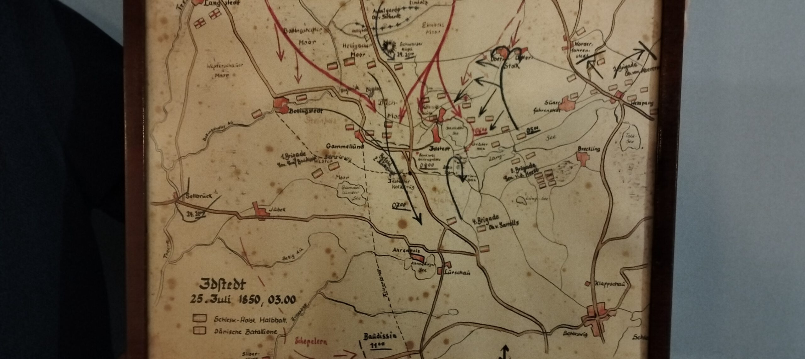 Jahrzehntelang hing eine gerahmte Karte im Gasthof „Zum goldenen Stern“. Sie zeigt die Stellung der schleswig-holsteinischen und dänischen Brigaden am 25. Juli 1850 um 3 Uhr sowie deren anschließende Bewegungsrichtungen.