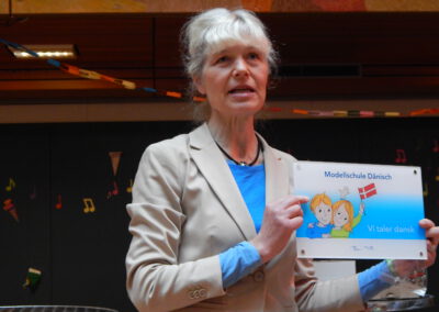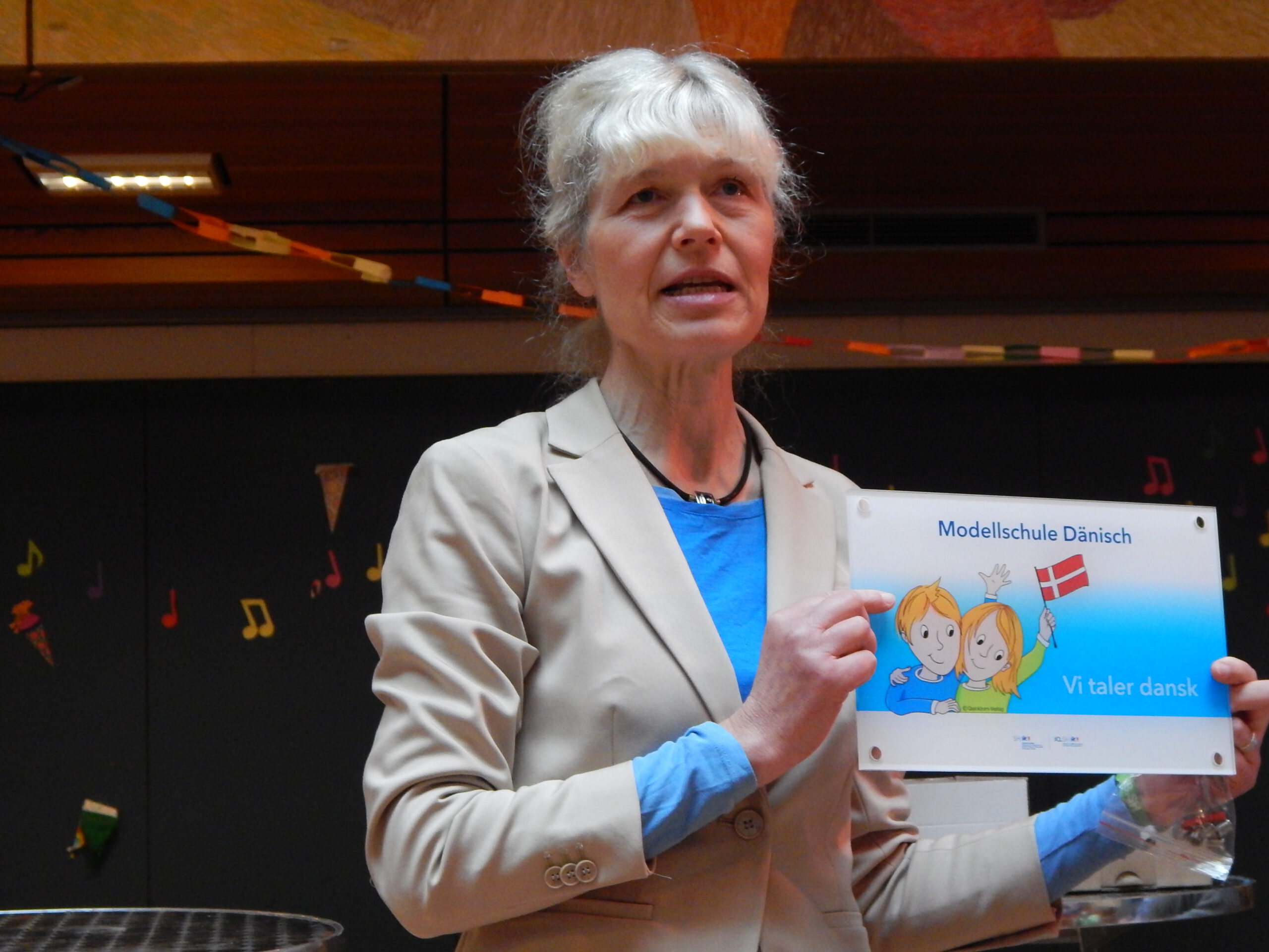 In der vergangenen Woche hat die Gemeinschaftsschule in der Auenwaldschule eine weitere Zertifizierung erhalten: Die Referentin für Regional- und Minderheitensprachen im Bildungsministerium, Karen Nehlsen, hat das Aushängeschild „Modellschule Dänisch“ überreicht.