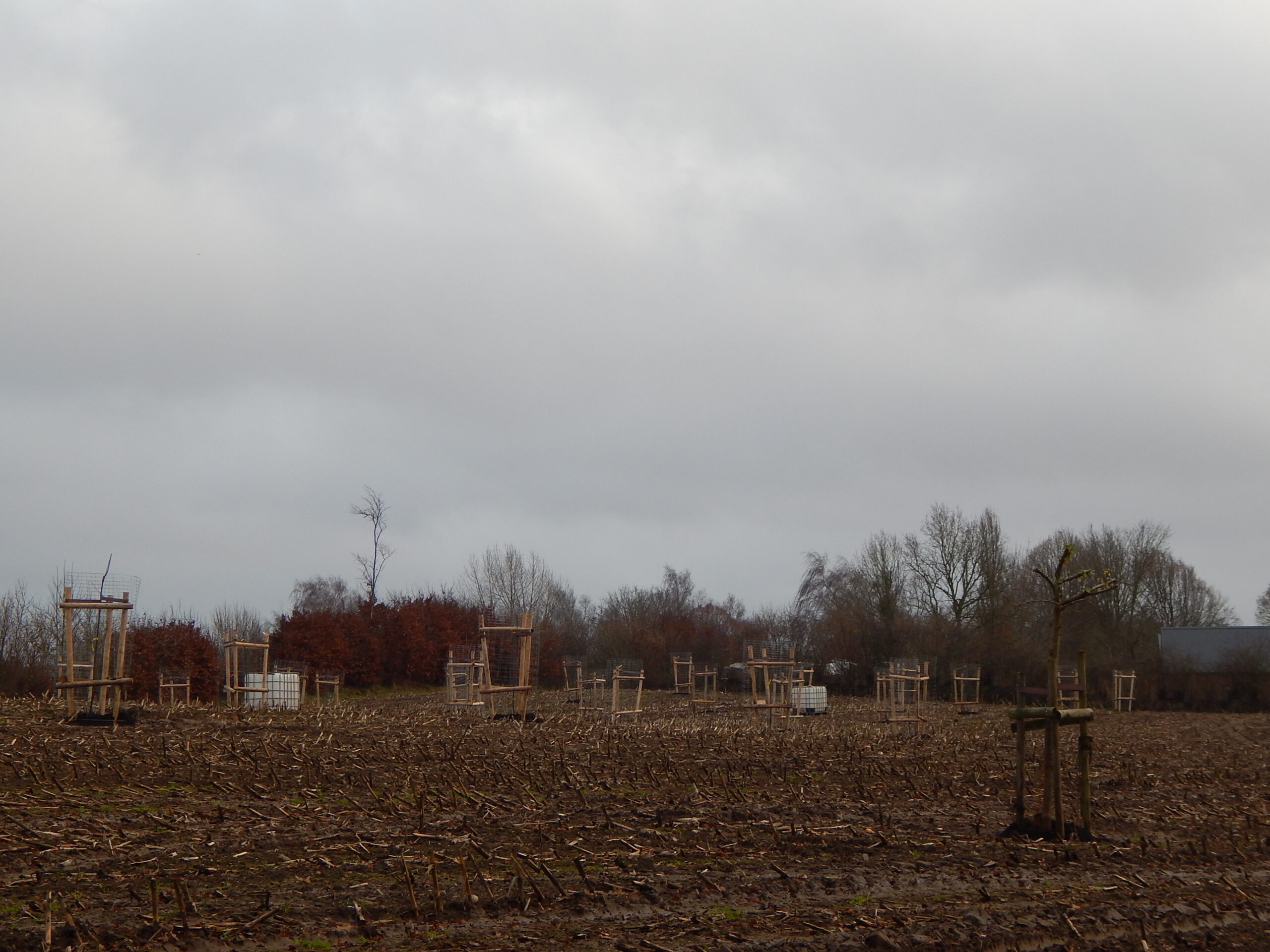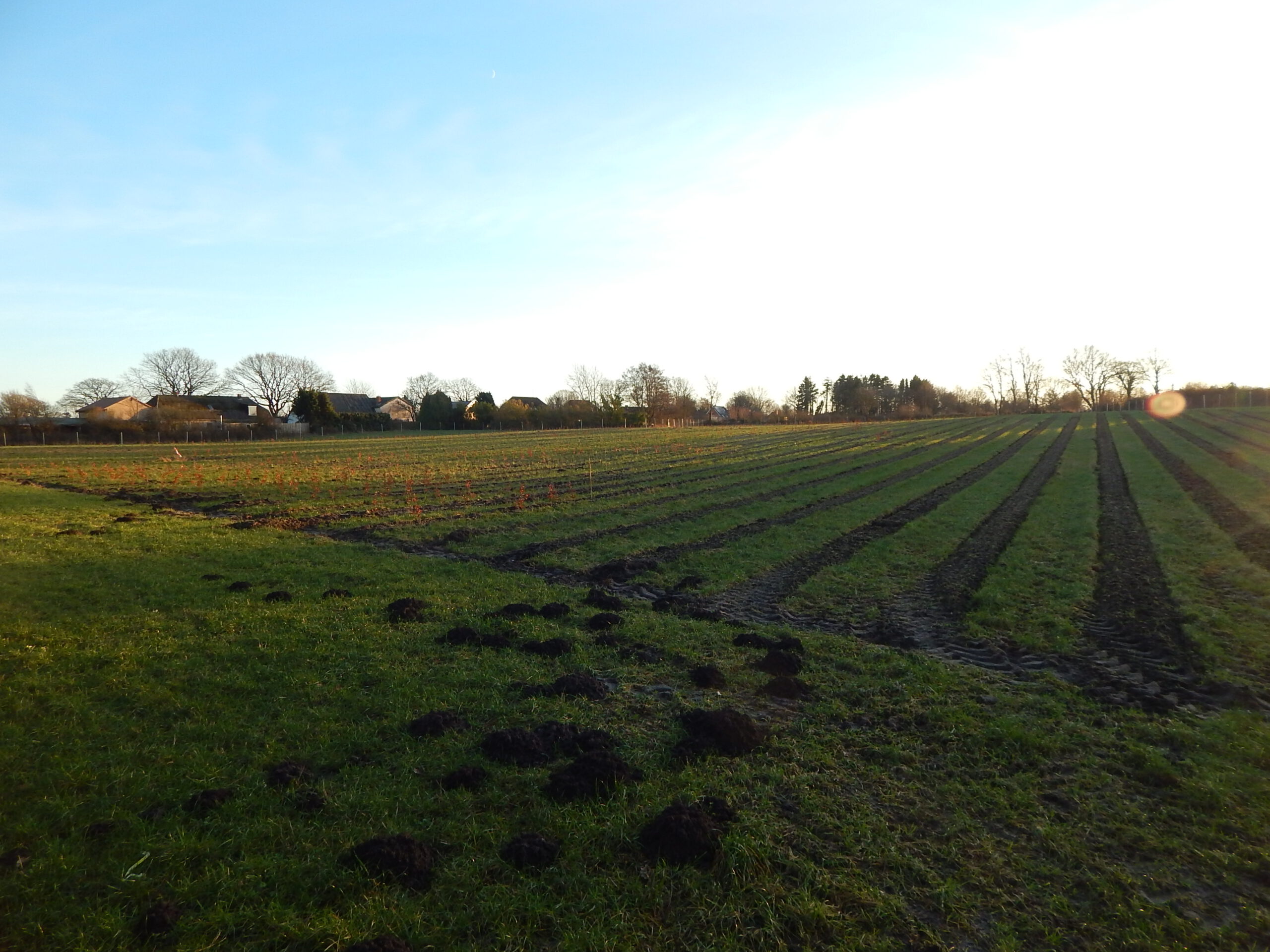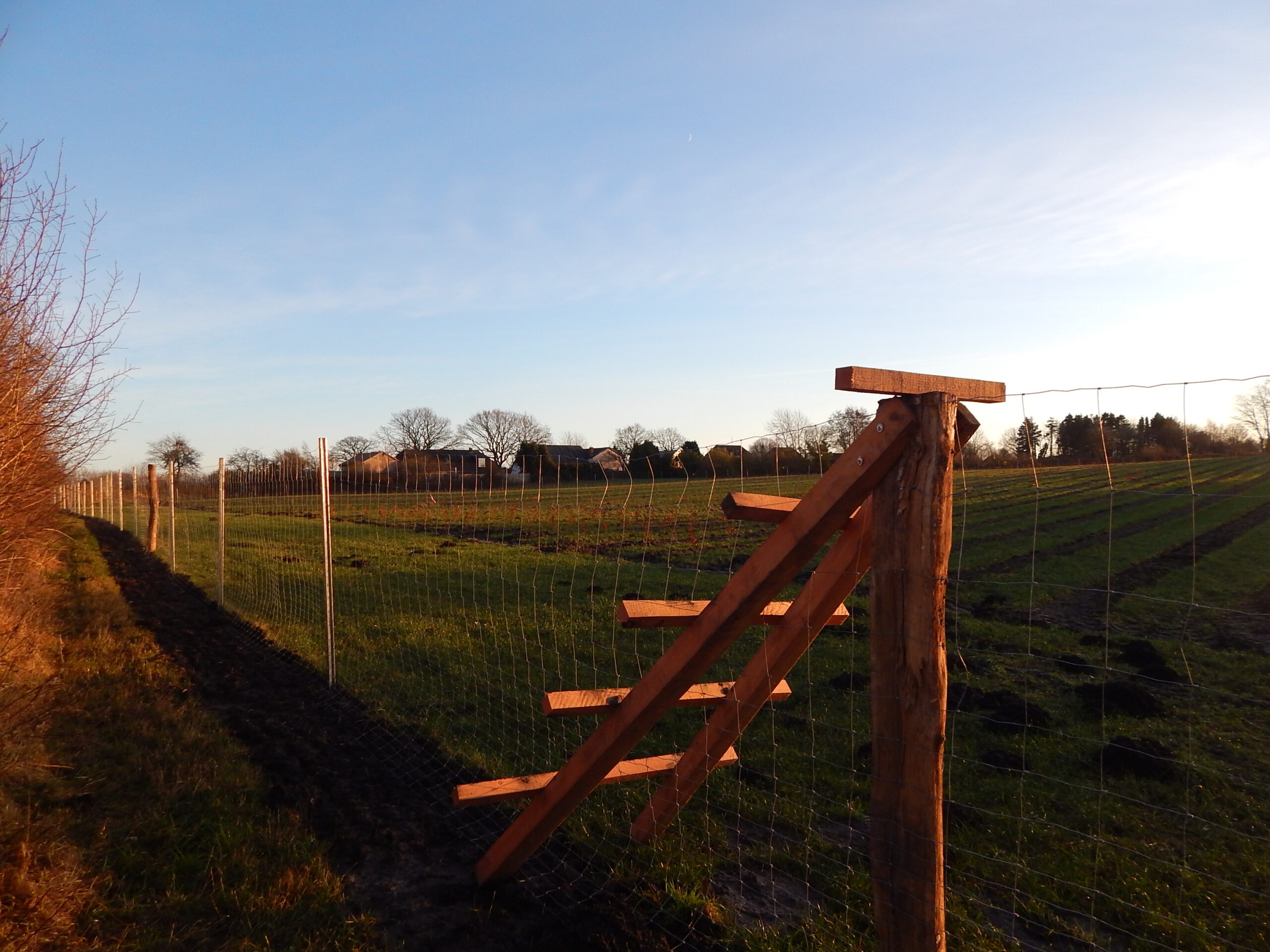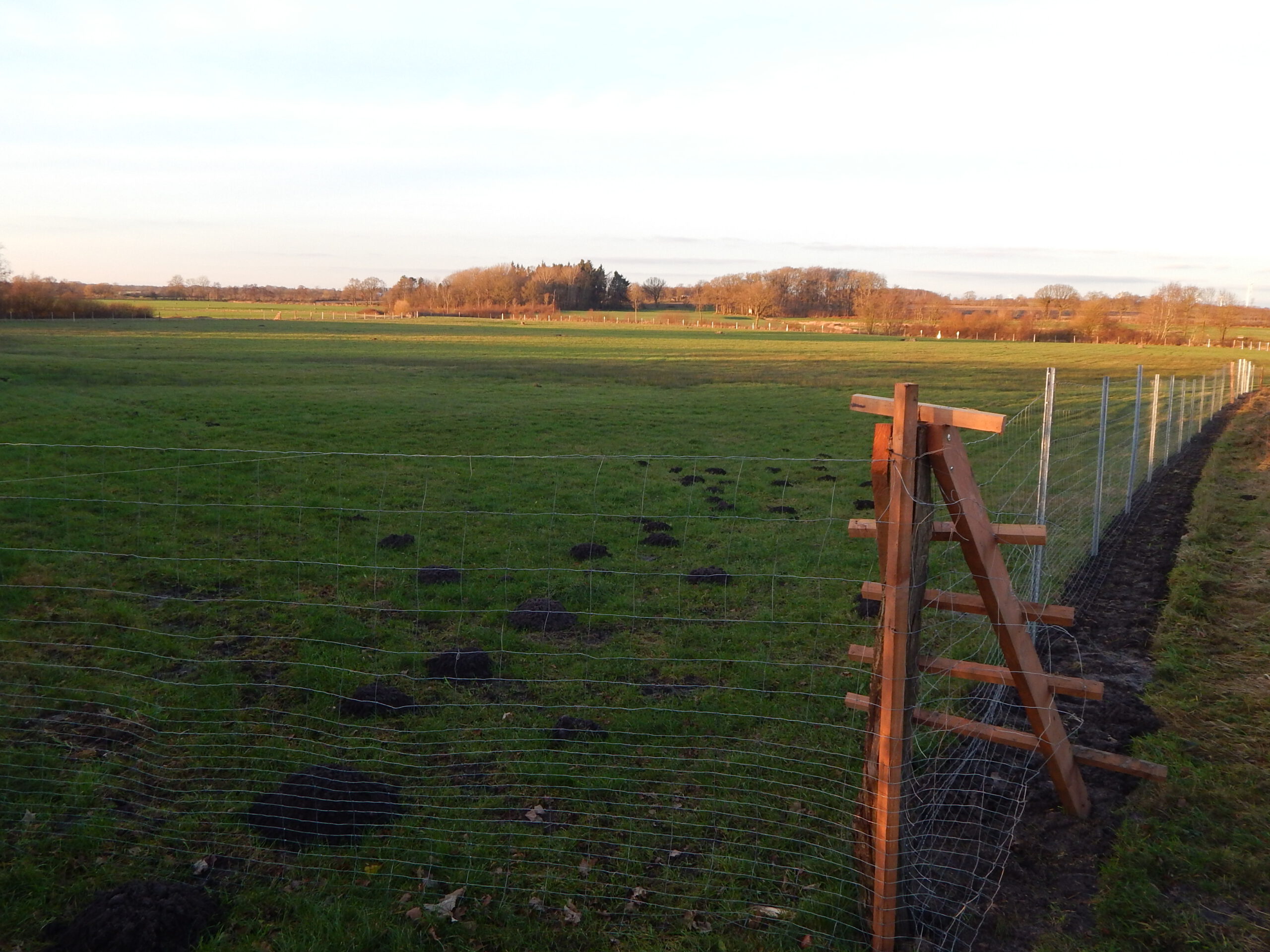 Unsere letzten vier Fotos stammen aus dem „Jordmoor“. Dort wird in privater Initiative eine ganze Koppel aufgeforstet. Man sieht, dass der noch nicht angepflanzte Bereich mit Furchen bereits vorbereitet ist. Und genau gegenüber auf der anderen Straßenseite ist eine Weide frisch eingezäunt. Das sieht ganz danach aus, dass auch hier Bäume wachsen werden.