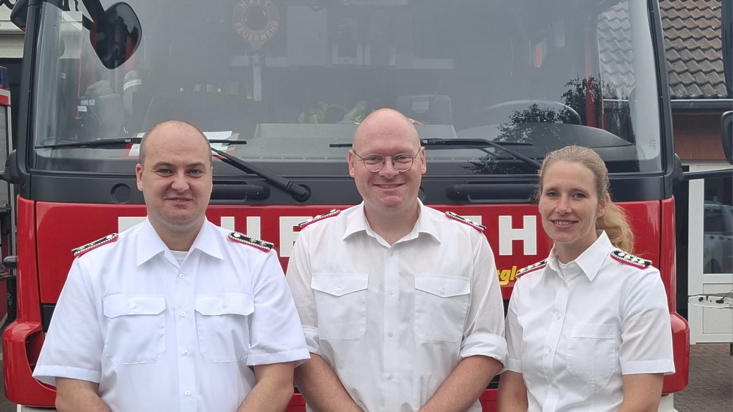Unsere Jugendfeuerwehr des Bezirks Böklund hat eine neue Führung: Christoph Meins aus Stolk (Mitte) hat den Böklunder Lothar Beusen als Jugendwart abgelöst. Er hat zwei Stellvertreter, nämlich zunächst Sebastian Keller und als zweite seine Stolker Kameradin Hauptfeuerwehrfrau (3 Sterne) Lisa Andresen.