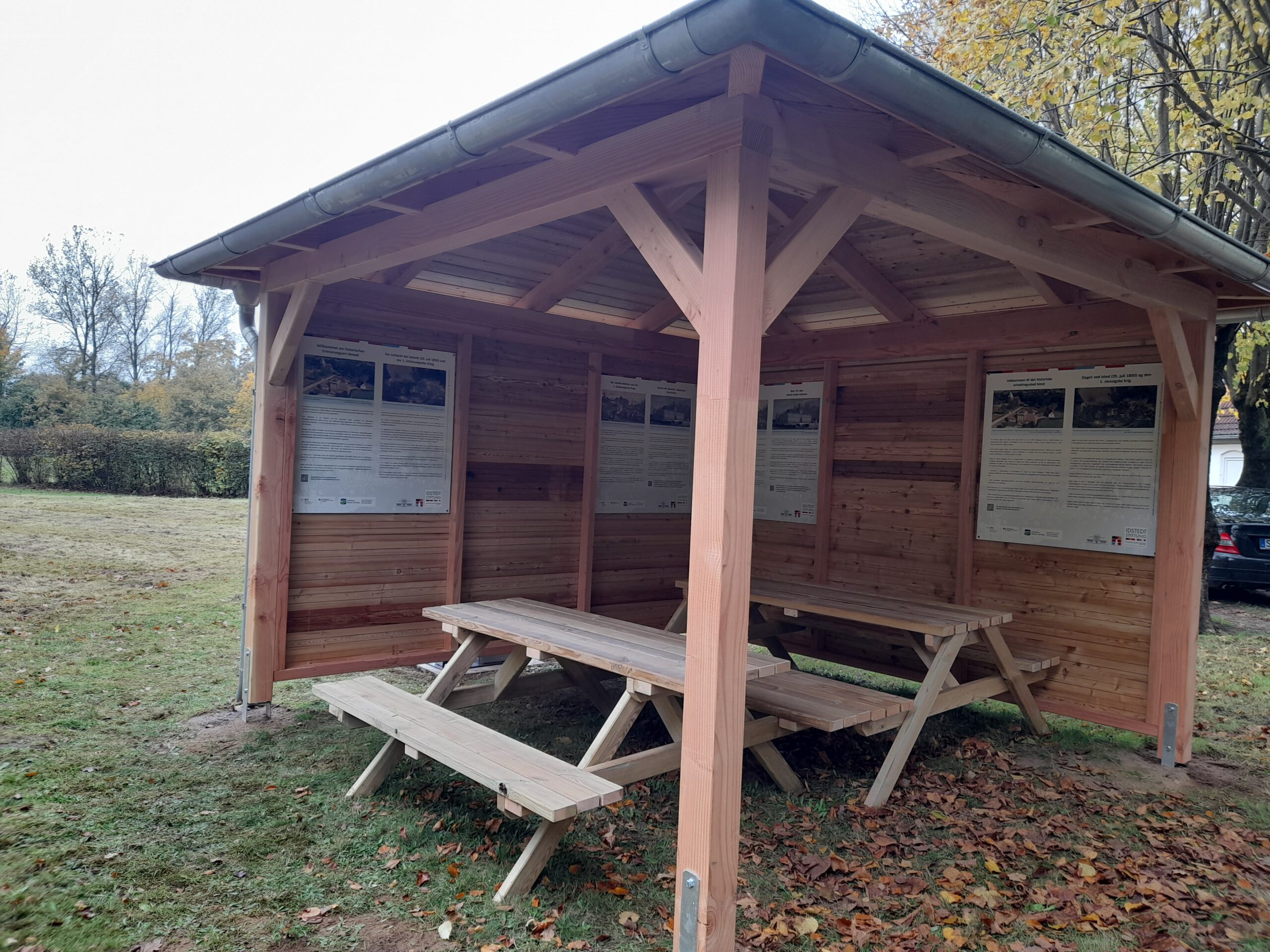 Mit Unterstützung der AktivRegion Schlei-Ostsee, die das Vorhaben zu 80% finanziert hat (genau wie bei uns auf dem „Platz am Eichenhof“), ist dies gelungen: Nun steht auf dem Gelände des Idstedt-Museums gegenüber der Kirche ein Pavillon, der Interessierten nicht nur eine Rastmöglichkeit bietet, sondern auch die Gelegenheit, sich über den historischen Erinnerungsort Idstedt zu informieren.