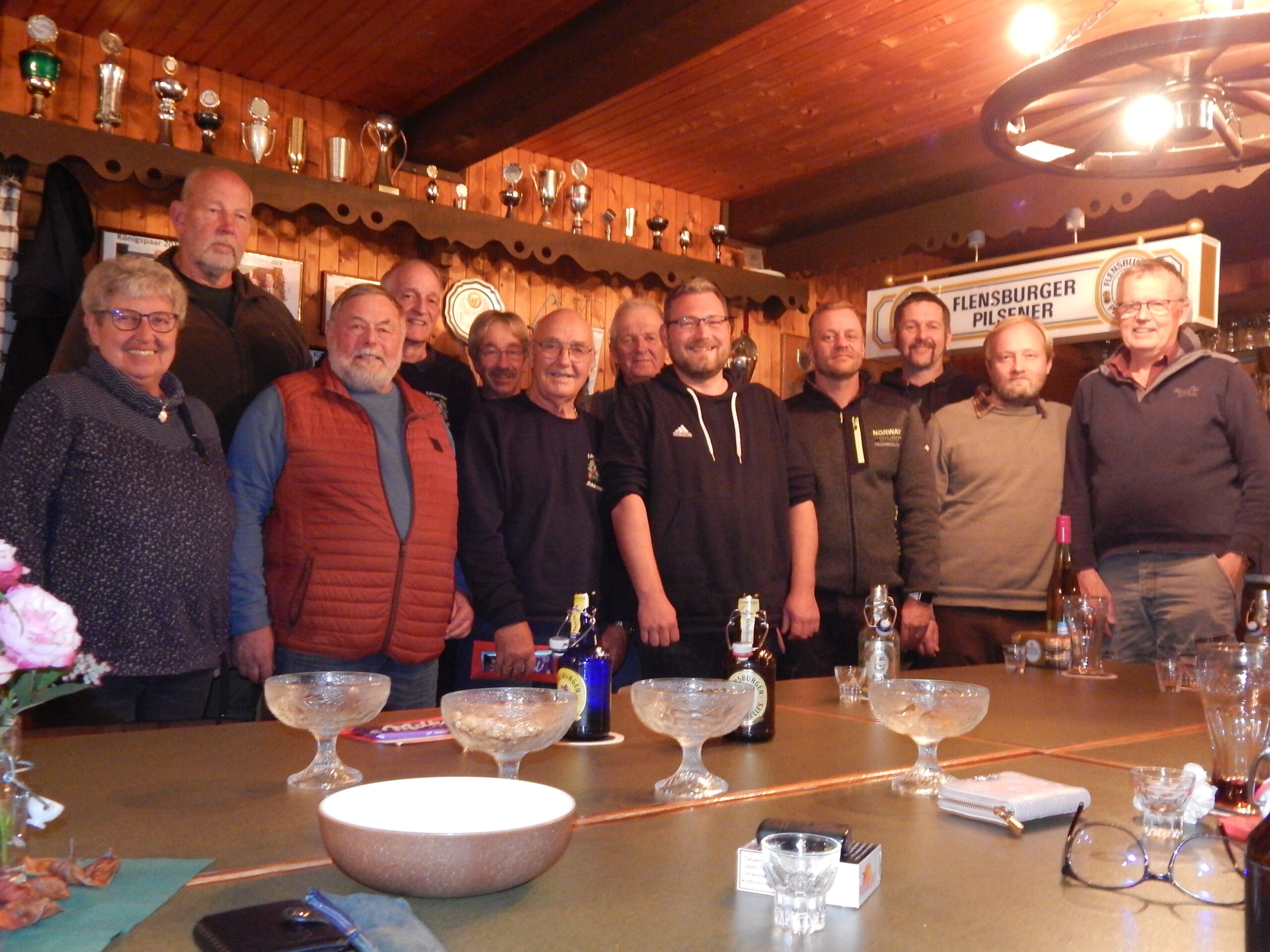Aus Stolk waren Vertreter aller drei Schützenvereine dabei; aber nur zwei schafften es nach zwei k.o.-Runden ohne Bock und stehend freihändig unter die Gewinner: Björn Hansen (2.v.re.) auf dem 5. Platz und Otto Struppe (6.v.re.) als Achtbester.