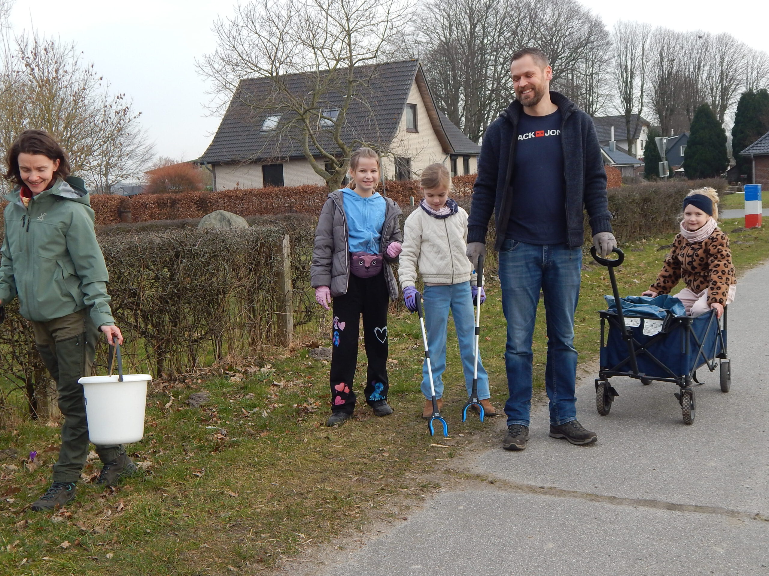 An der alljährlichen Aktion des Umweltausschusses „Sauberes Dorf“ am 7. März beteiligten sich Freiwillige, die daraus mit ihren Kindern eine Familienwanderung mit Müllsack und Greifer machten. Ausschuss-Vorsitzender Benjamin Haase teilte die Gruppen ein und lud zum abschließenden Essen ins Vereinshaus ein.