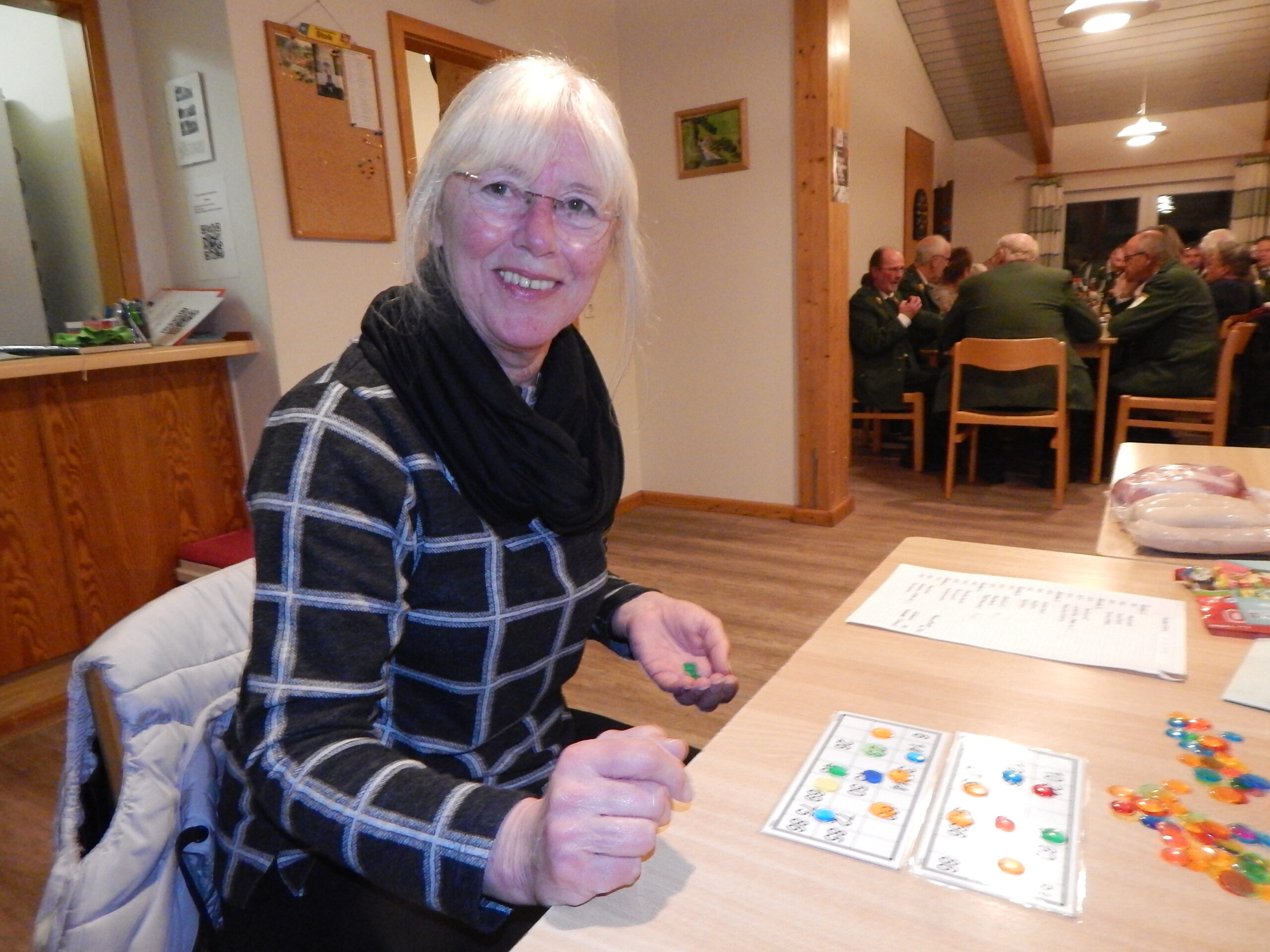 Schließlich kann man nachträglich sehen, dass beim anschließenden Verspielen wirklich alle Zahlen dabei waren. Es folgen eine Gesamtansicht und zum Schluss Dörte Philipsen, weil sie die Preise für das kostenfreie vereinsinterne Stimmungshoch besorgt hat.