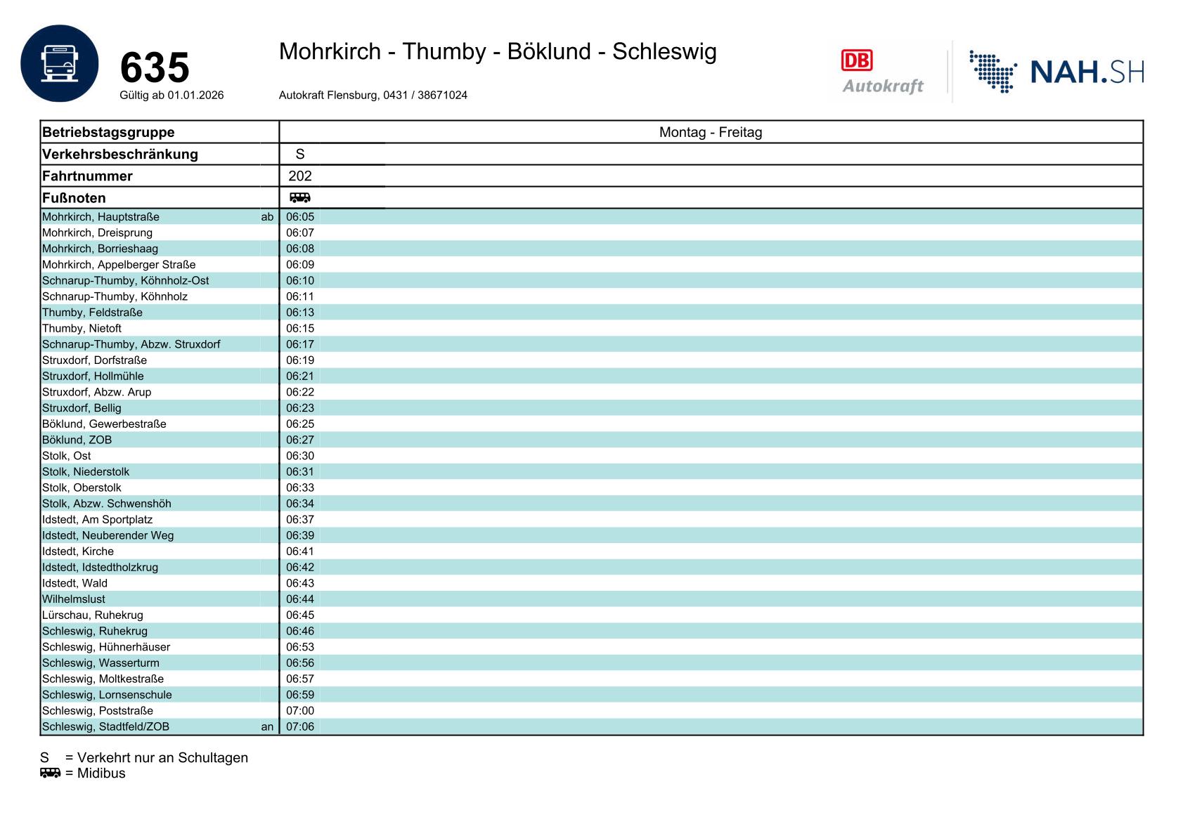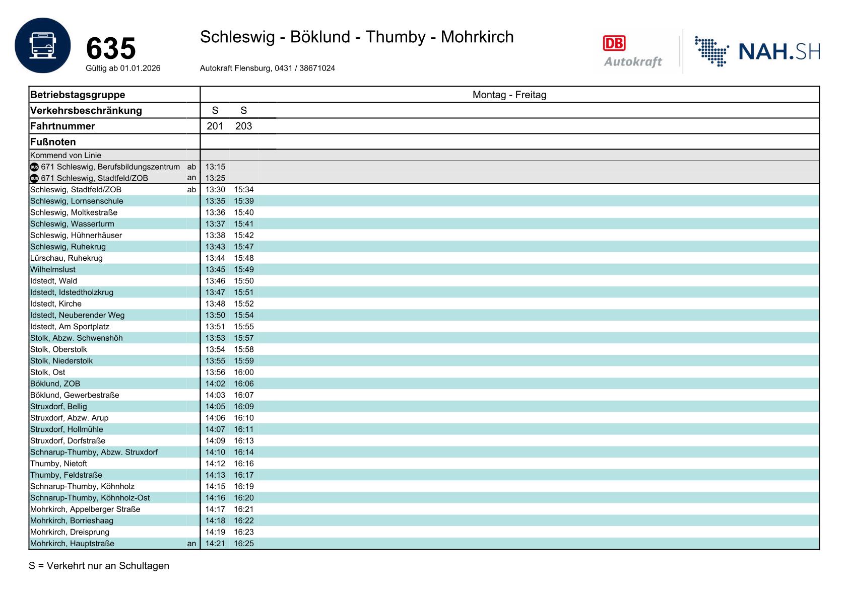 Tatsächlich haben die Schleswiger Nachrichten schon am 2.1. berichtet, dass die Linie 635 (SL-Mohrkirch über Stolk) auf schülerrelevante Fahrten reduziert ist.