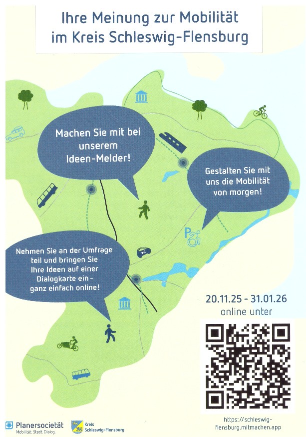 Immerhin läuft seit dem 20.11. und noch bis Ende Januar eine Umfrage im Kreisgebiet zur Mobilität. „Gestalten Sie mit uns die Mobilität von morgen!“ heißt es da und „Nehmen Sie an der Umfrage teil und bringen Sie Ihre Ideen auf einer Dialogkarte ein – ganz einfach online!“ Wir zeigen hierzu den passenden QR-Code. Aber mal ganz sachlich: Bereits im Dezember hatte Dirk Mordhorst den neuen Fahrplan im Internet entdeckt. Da war Stolk bereits abgehängt.