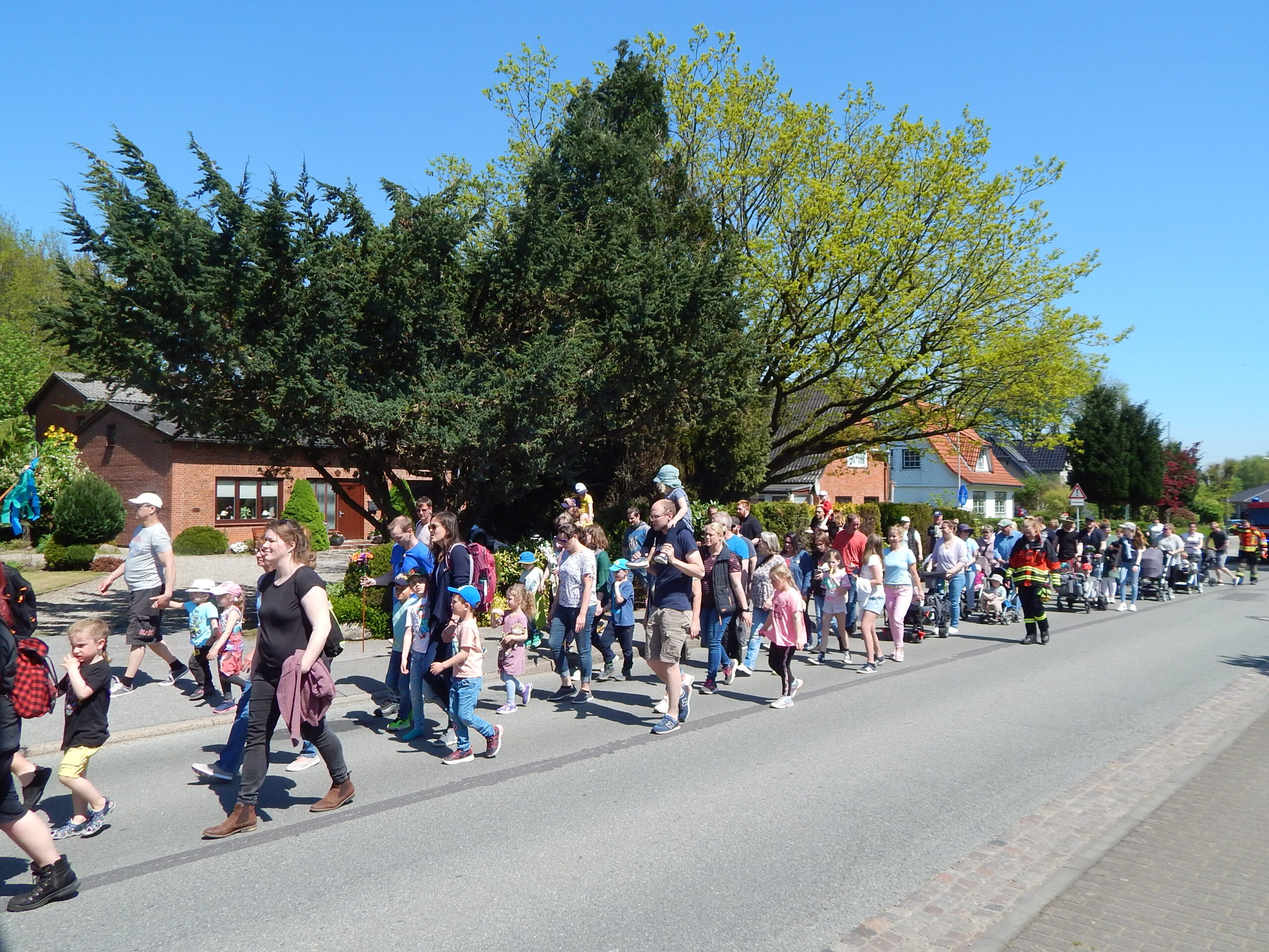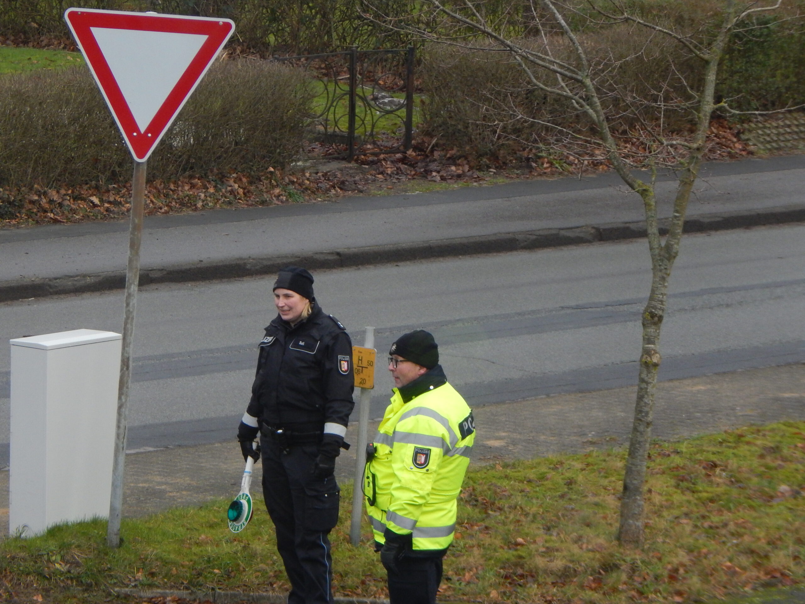 Sie fragen sich: Wieso hatten wir bisher ein Problem damit, durch Stolk zu fahren? Das kann ich Ihnen zeigen. Wir hoffen, wenn wir erst dazugehören, halten diese Schikanen auf. Gucken Sie mal hier: In Stolk läuft das halbe Dorf zu Fuß auf der Landesstraße.