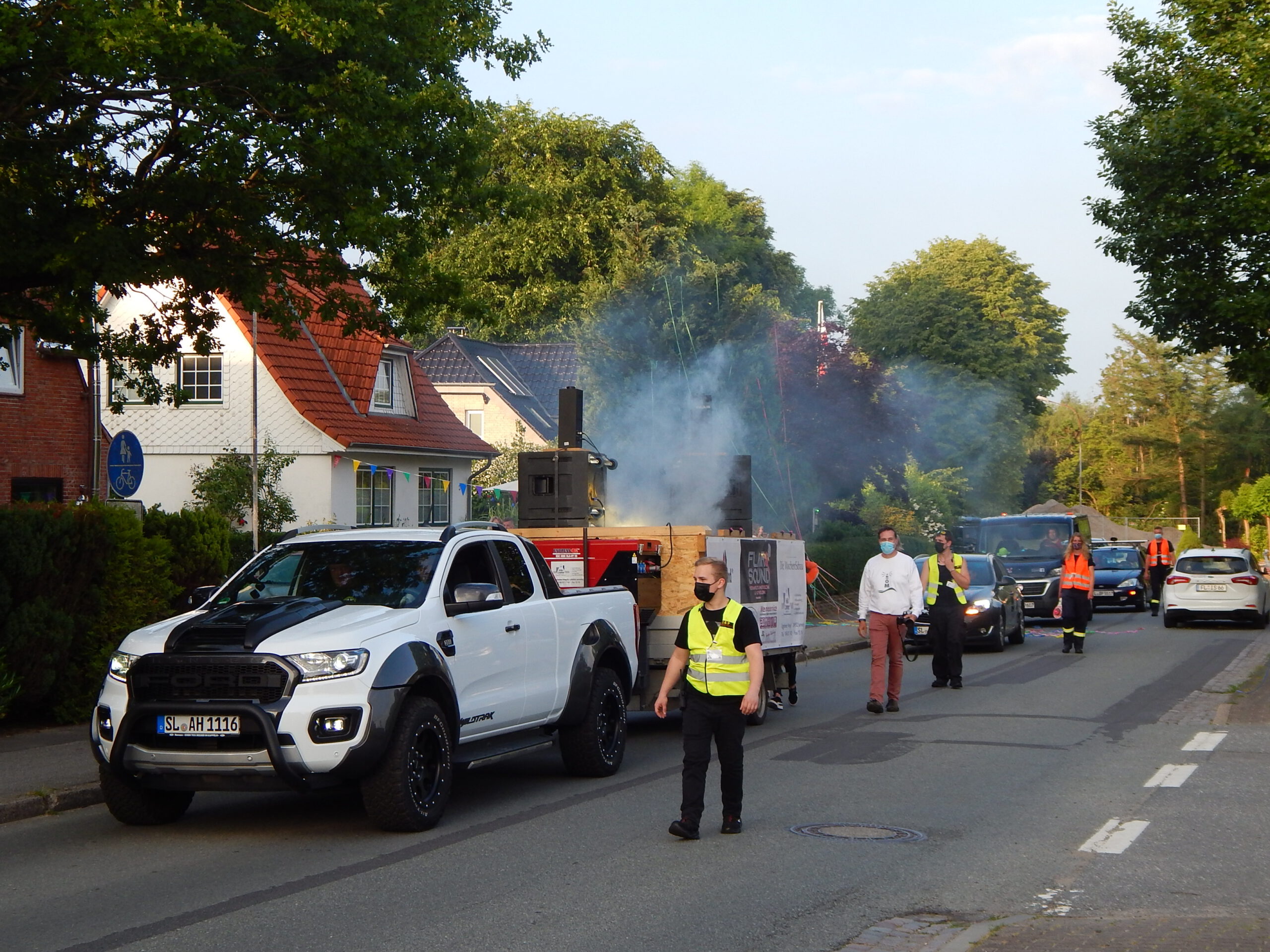 Oder Sie blockieren die Hauptstraße mit ´ner rollenden Musikanlage und Disconebel!