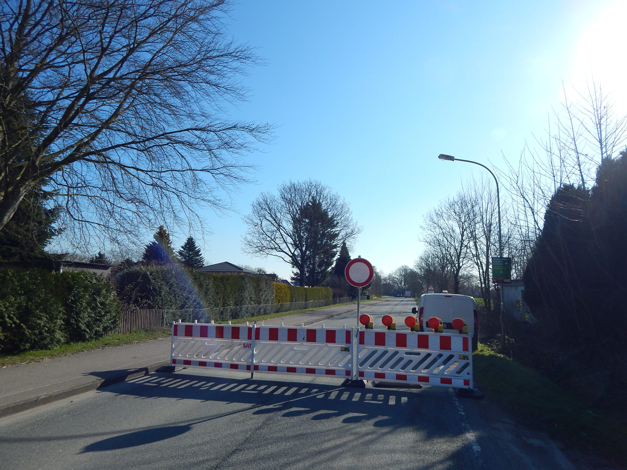 Wenn wir das dann endlich fast geschafft haben, ist Vollsperrung kurz vorm Ortsausgang nach Böklund. Da müssen wir zurück, und dann geht das Ganze wieder von vorn los!