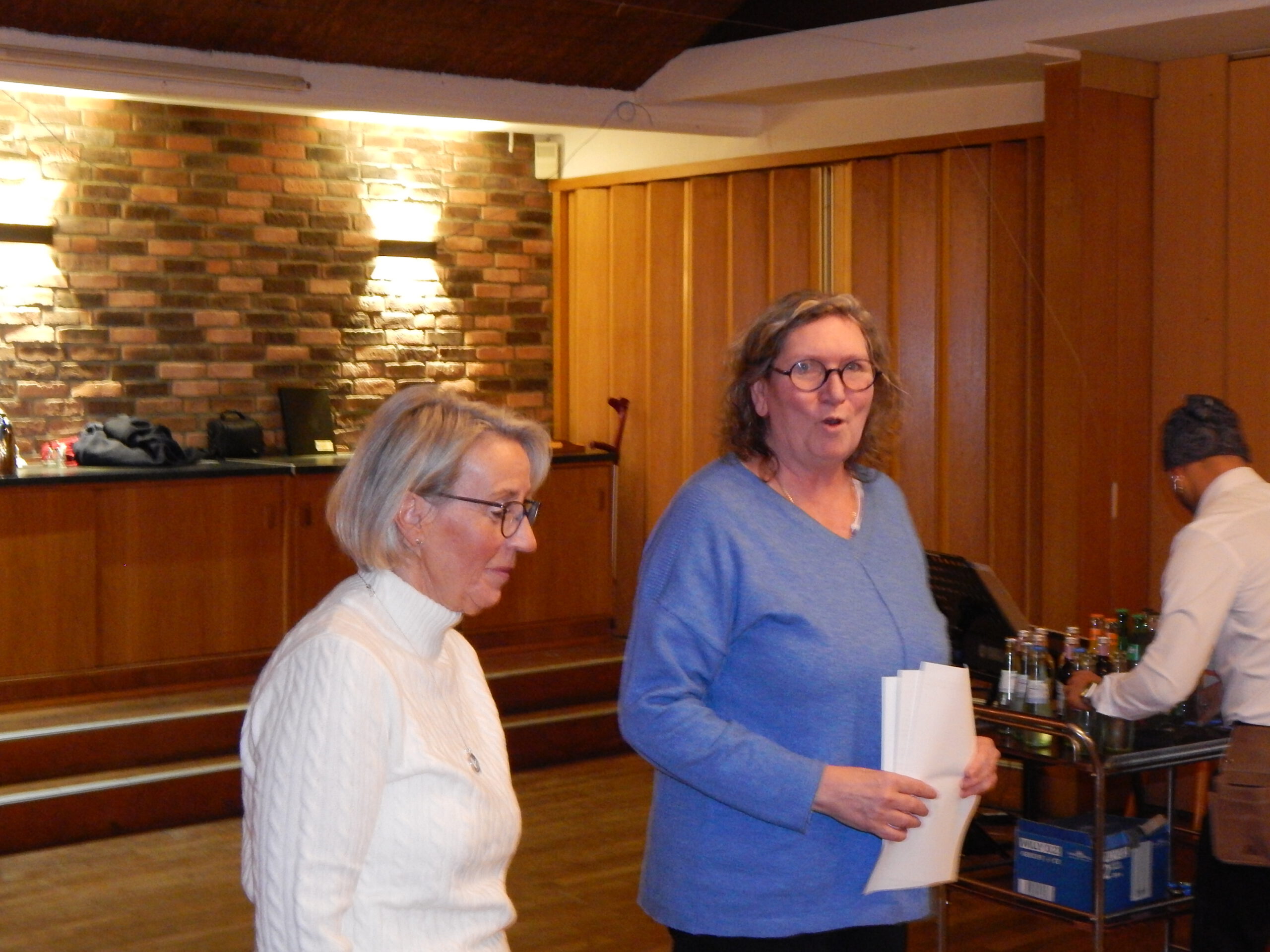 Ja, wir wollen dazugehören. Aber wir knüpfen das an zwei Voraussetzungen: 1. Wie gut klappt denn bisher die Zusammenarbeit zwischen Stolk und Süderfahrenstedt?“ – „Oh, wir sind hochzufrieden“, hörte man im Saal jemanden rufen. „Bei Alarm rücken die Süderfahrenstedter mit Blaulicht bei uns aus und wir machen bloß die Ausfahrt frei. Hier – gucken Sie selbst!“