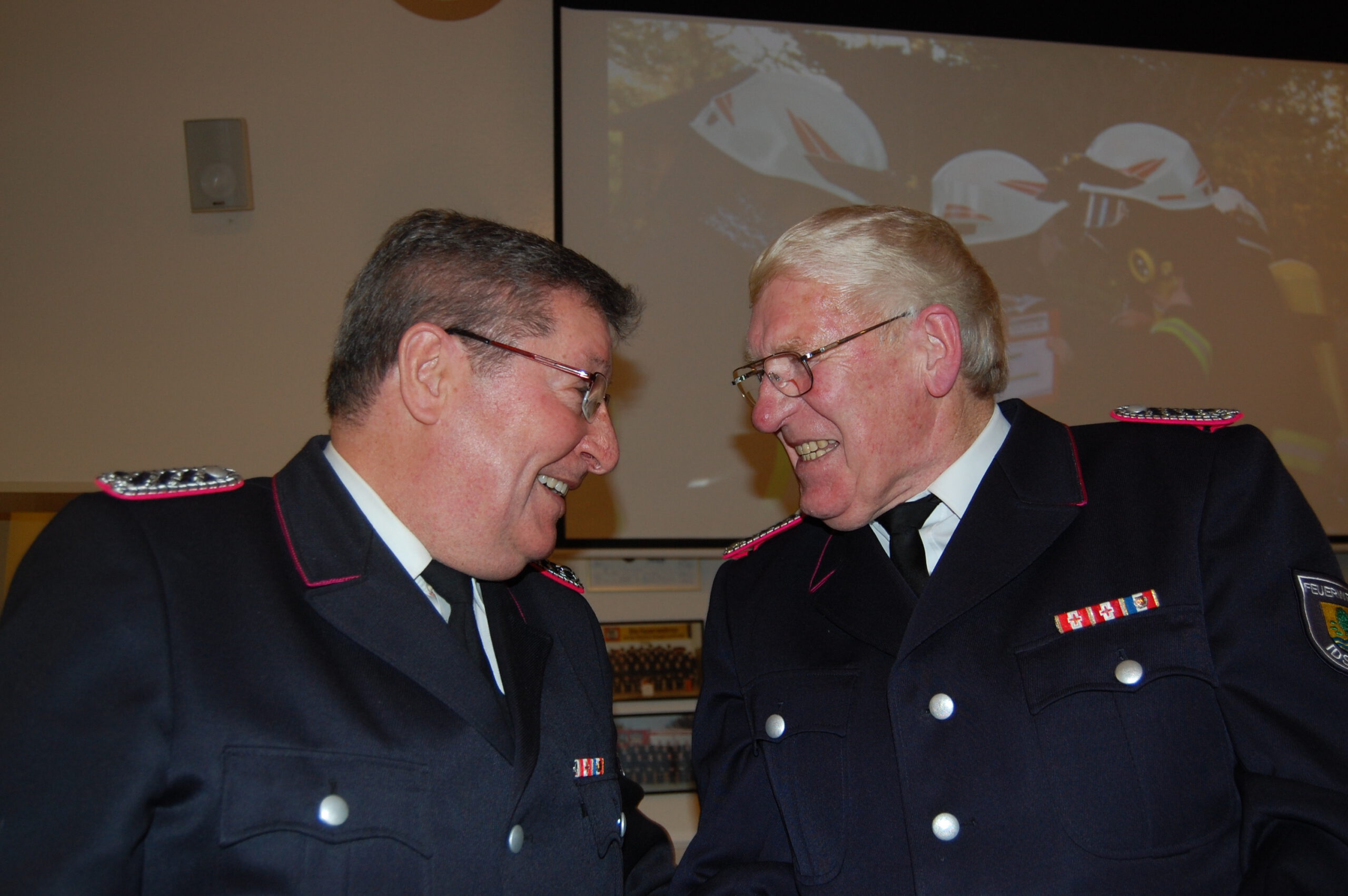 Mit unseren Freiwilligen Feuerwehren klappt das ja wohl gewaltig gut. Hier – beide Bürgermeister und beide Wehrführer dokumentieren ihre freundschaftliche Zusammenarbeit: