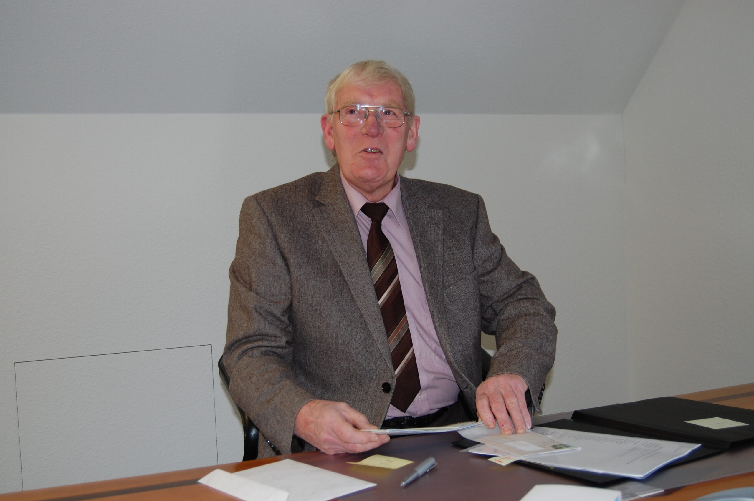 Als erster machte sich unser ehemaliger Bürgermeister Friedrich Karde daran, unter Aufsicht einer Verwaltungsfachkraft vom Amt Südangeln seine Unterschrift zu leisten.