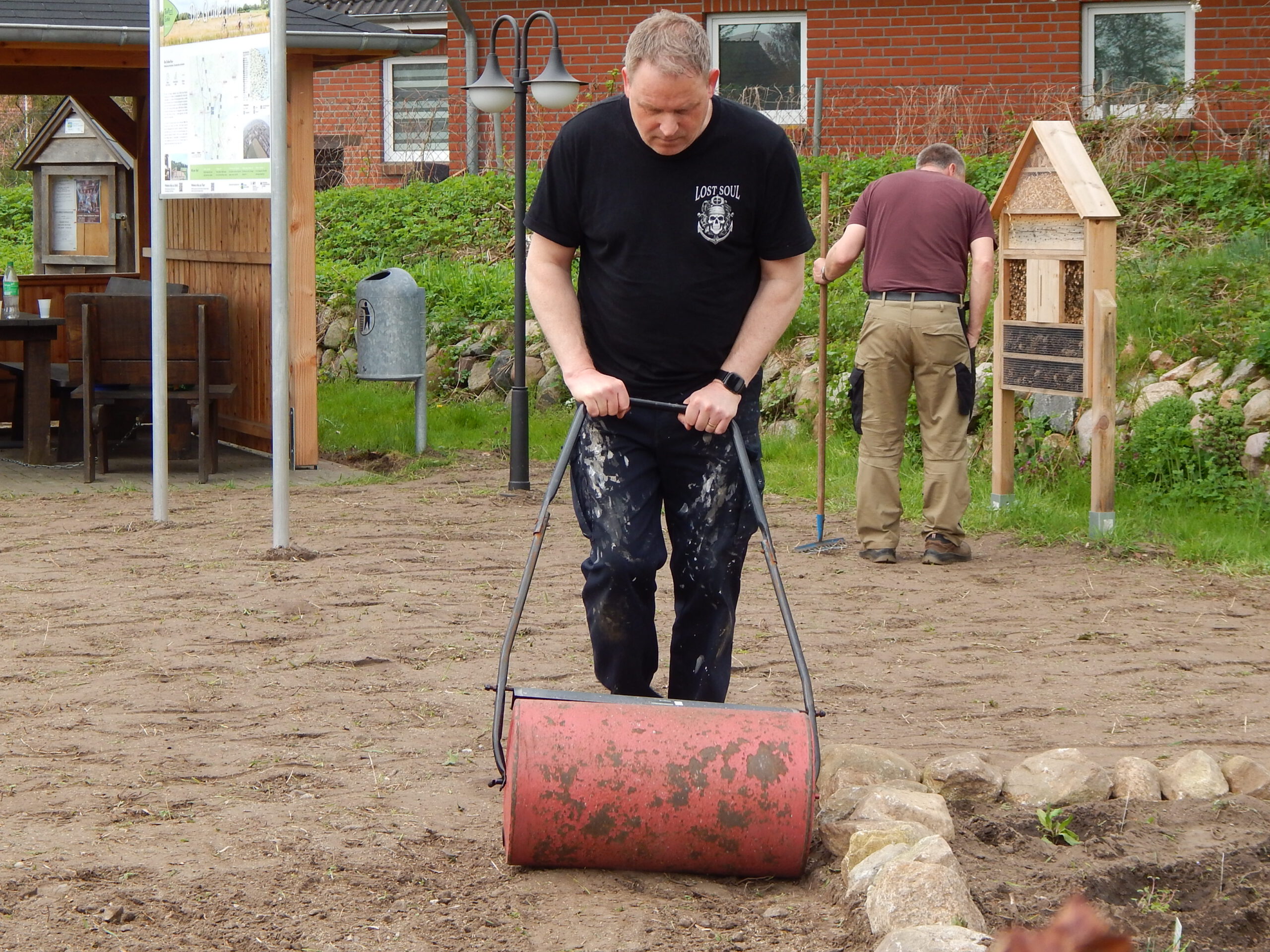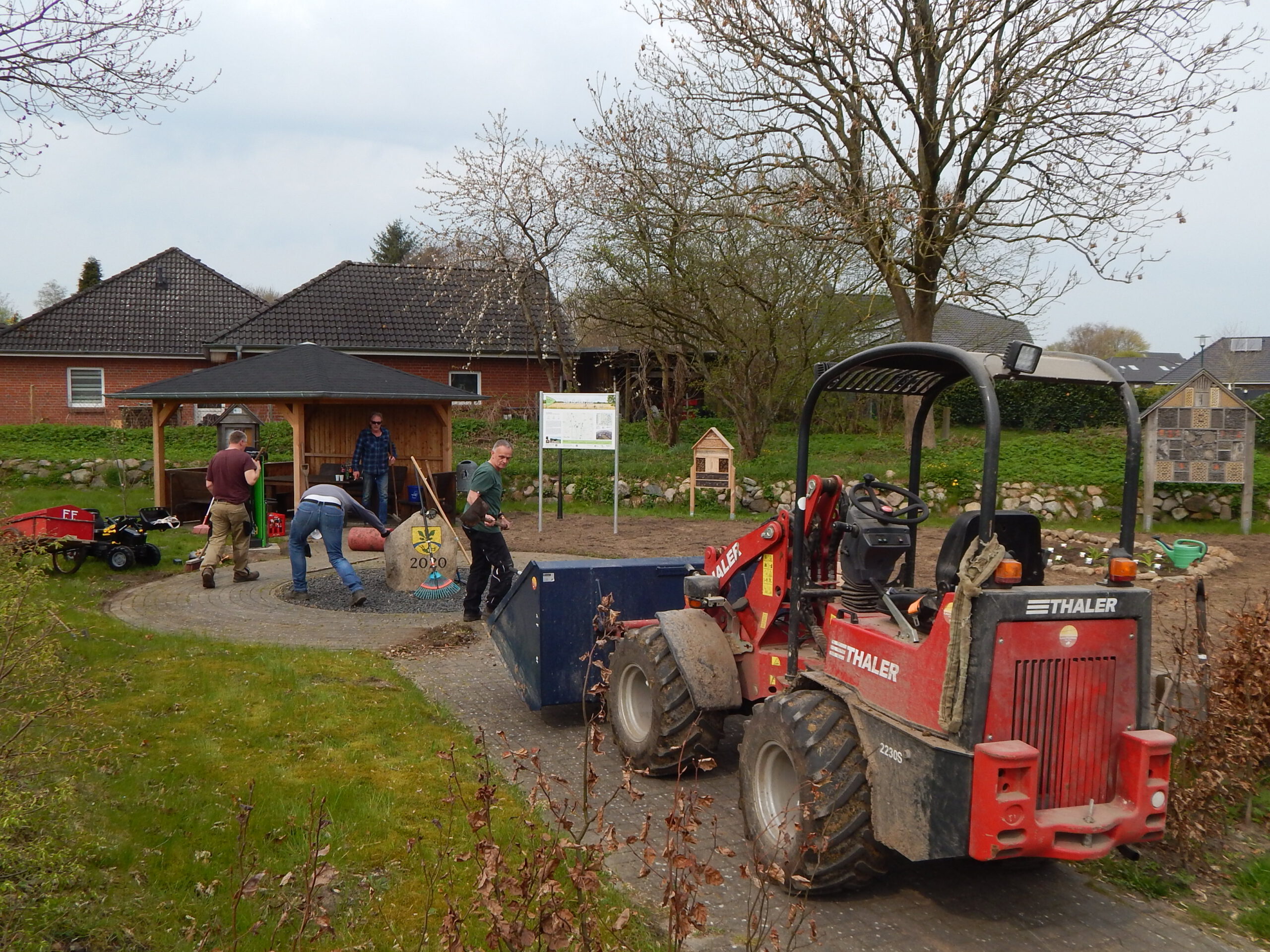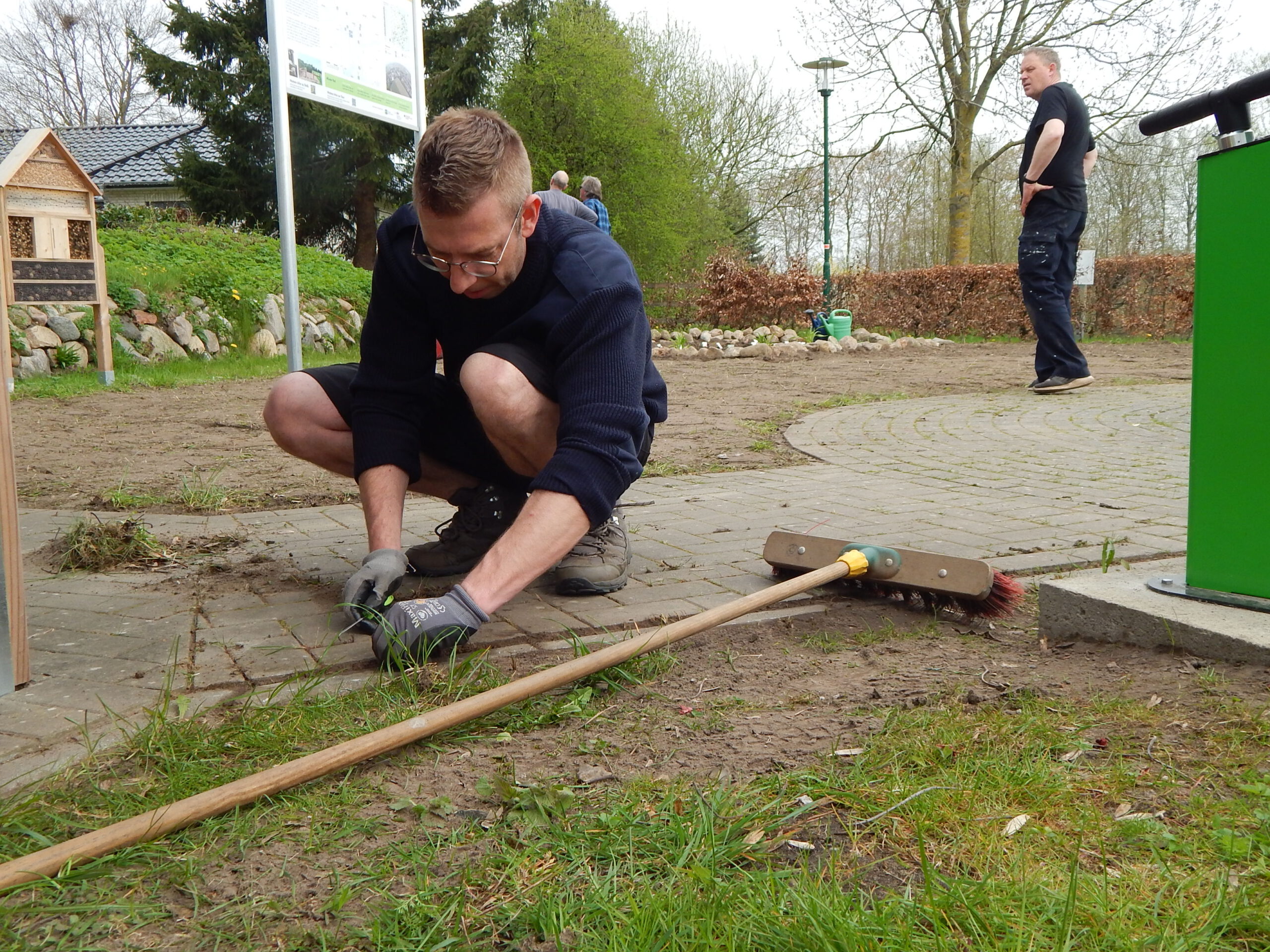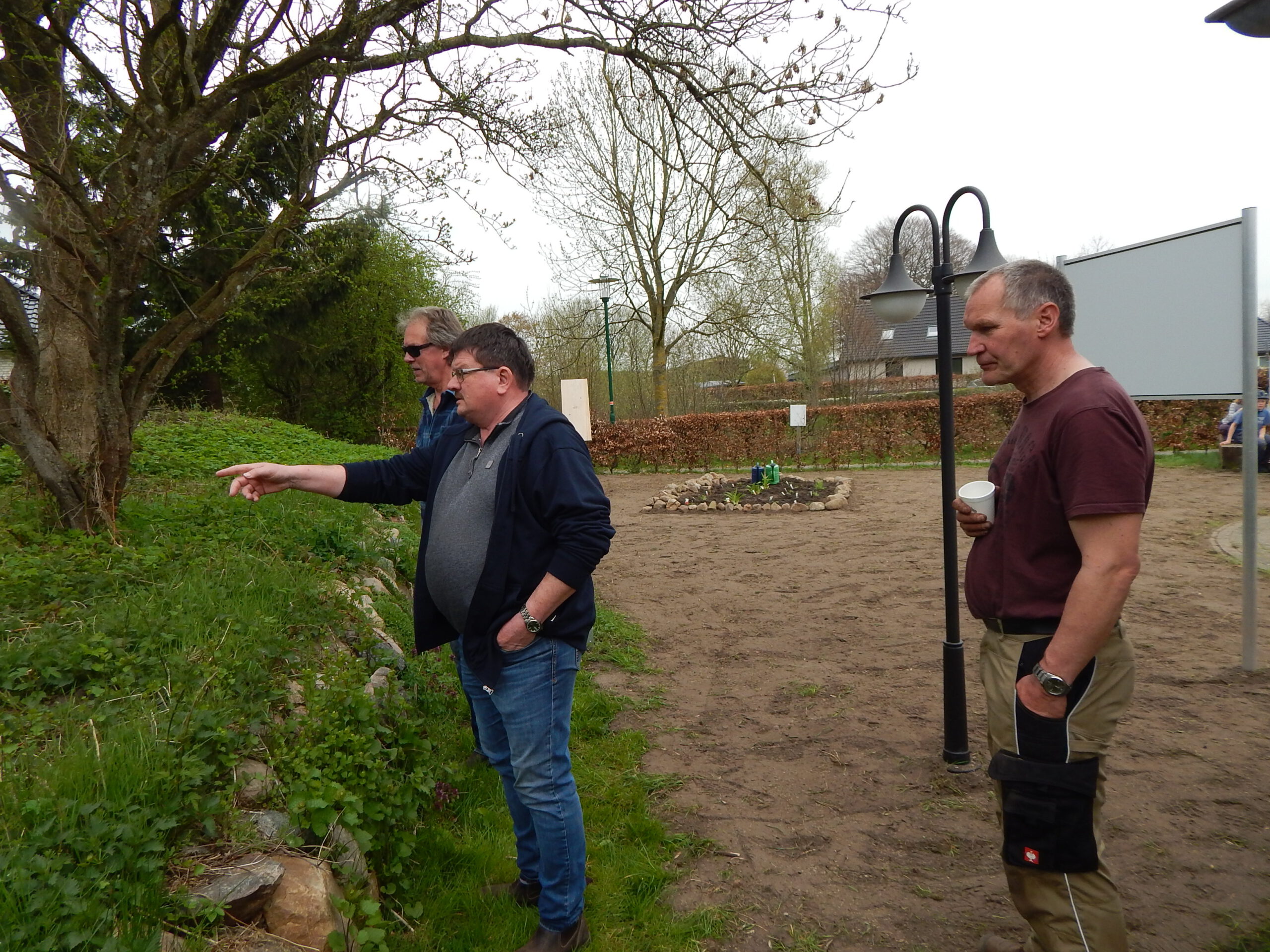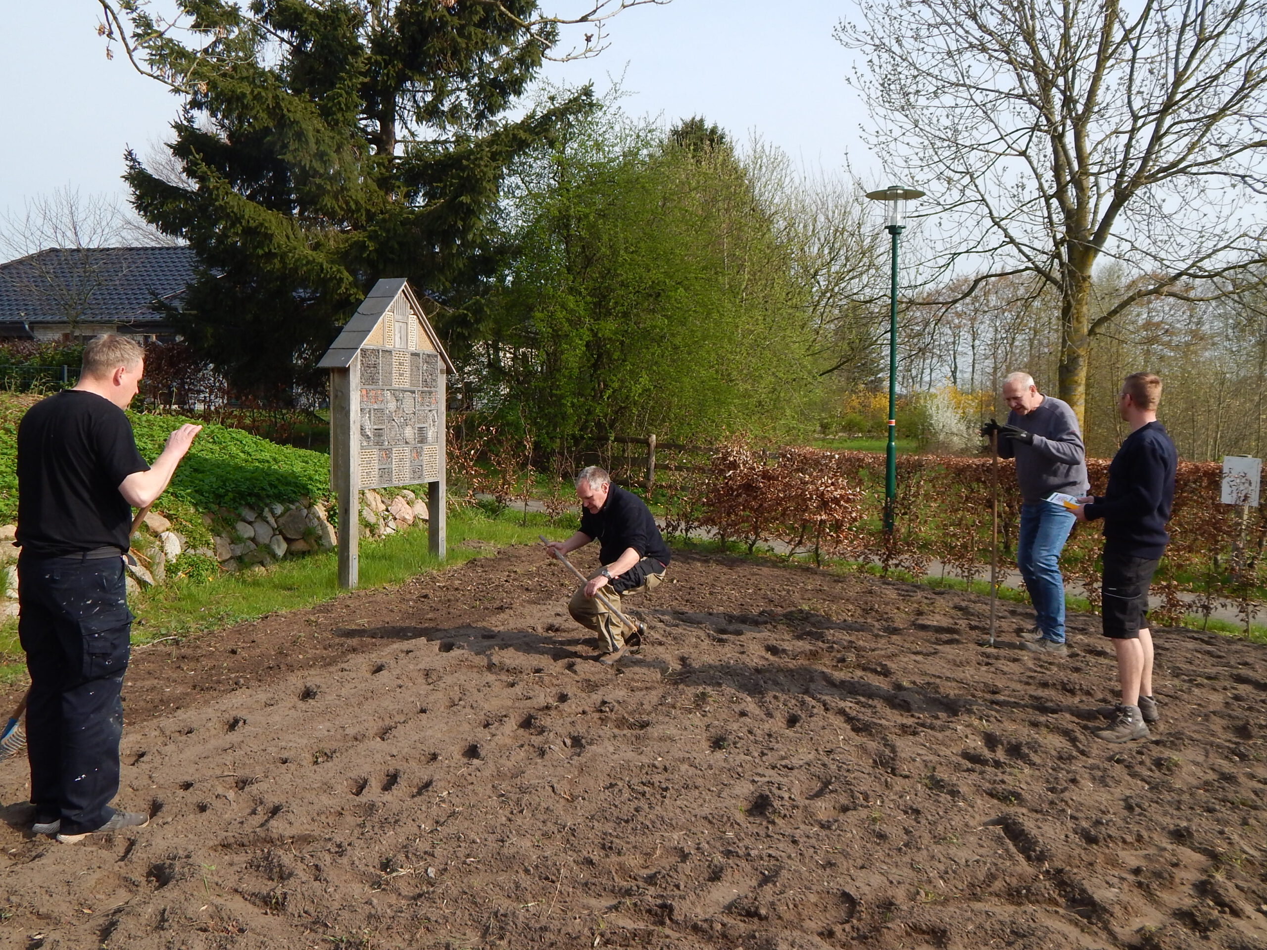 Zum vergangenen Samstagvormittag hatte der Umweltausschuss der Gemeindevertretung zur Verschönerung des Ortsbildes auf den „Platz am Eichenhof“ eingeladen. Zwar richtete sich der Aufruf des Vorsitzenden Benjamin Haase an die „liebe Dorfgemeinschaft“; aber zur Arbeit angetreten sind nur die Ausschussmitglieder.
