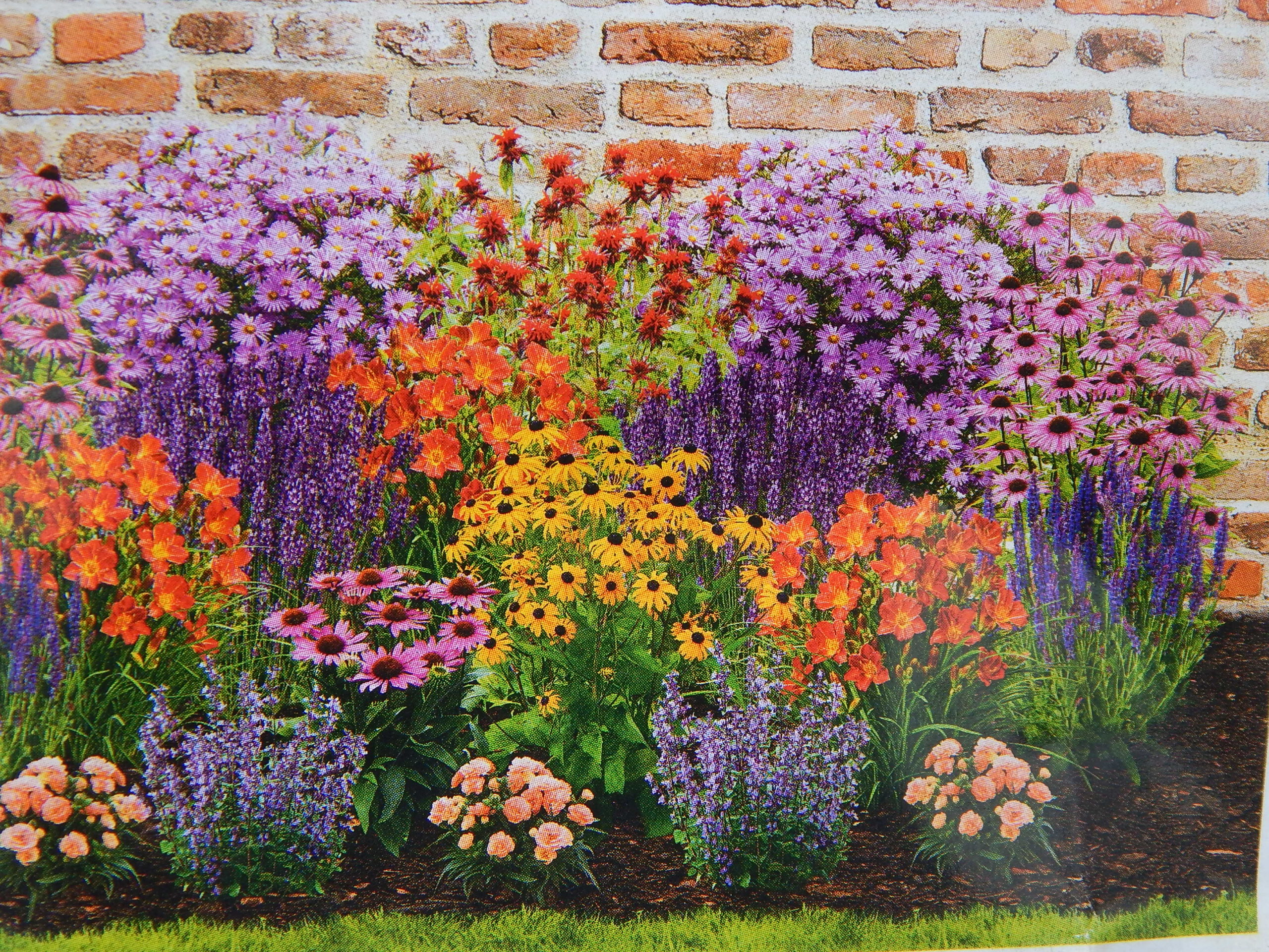 Die freiwilligen Gartenarbeiter haben darauf geachtet, dass die hohen Sorten von der Straße aus hinten wachsen, damit bei Sonne kein Schatten die kleinwüchsigen Blumen blockiert. Wir fügen ein Foto bei, wie das Blumenfeld im Idealfall aussehen könnte (wenn die dort häufig anzutreffenden Rehe das erlauben).