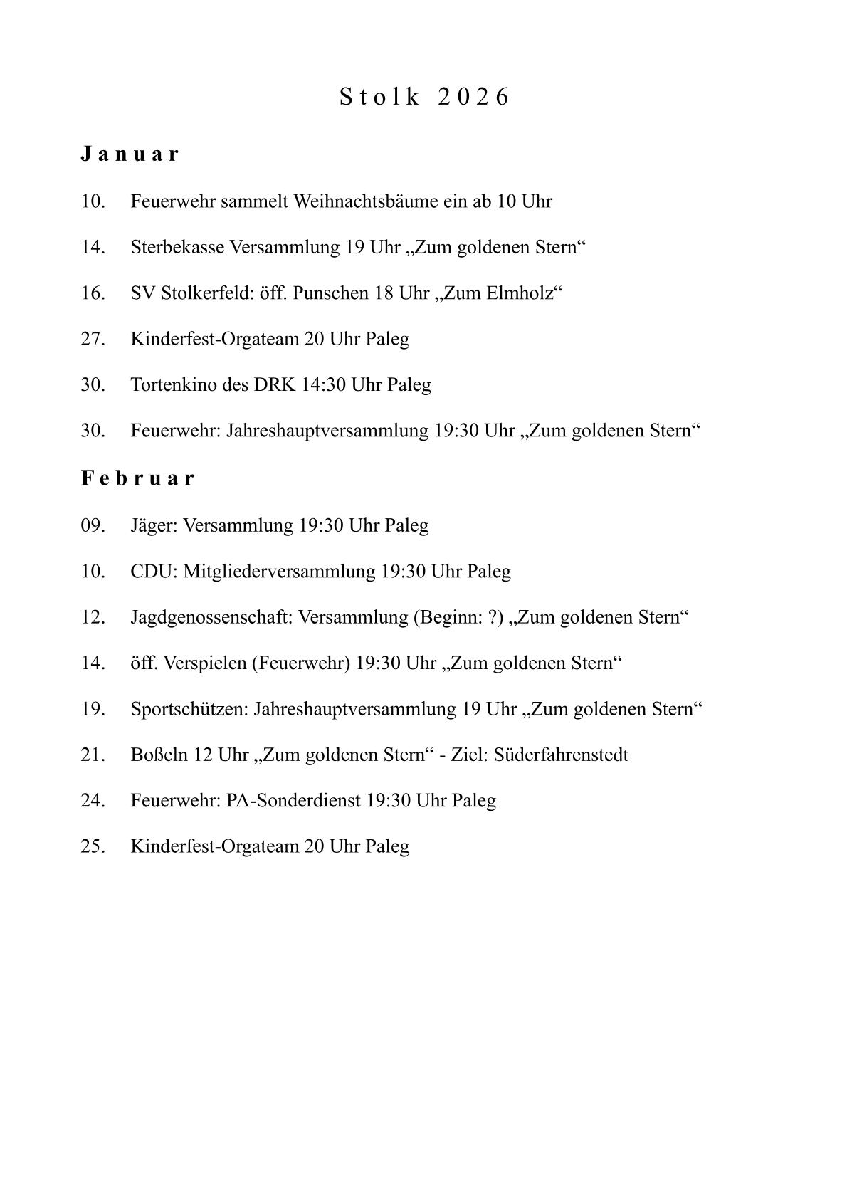 Veranstaltungen Januar-Februar 2026