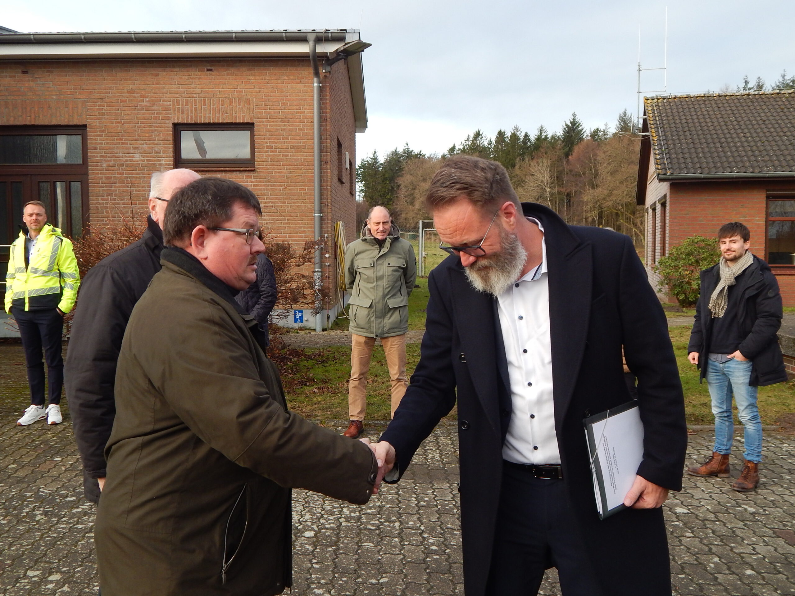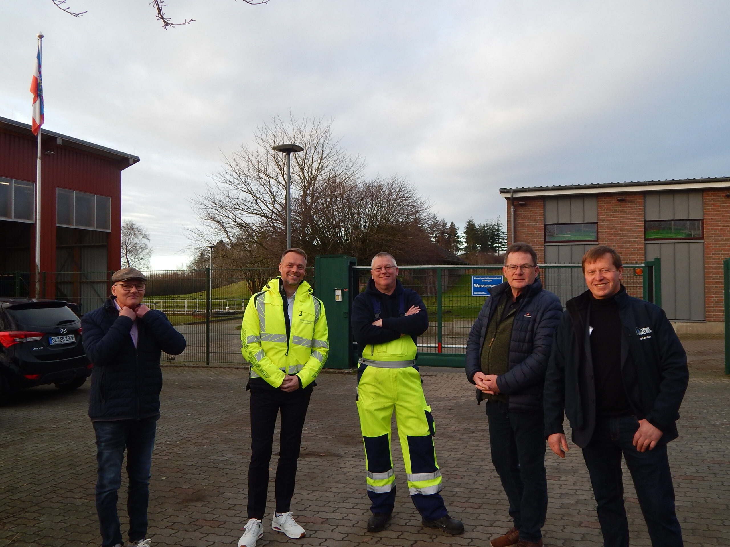 Ja, ihr guckt richtig: Unser Bürgermeister Kai Börensen begrüßt den Wirtschaftsminister von Schleswig-Holstein, Claus Ruhe Madsen, auf dem Gelände des Südangler Wasserwerks. Das war heute vor zwei Wochen. Wir berichten erst heute darüber, weil genug anderes los war in unserem Dorf.