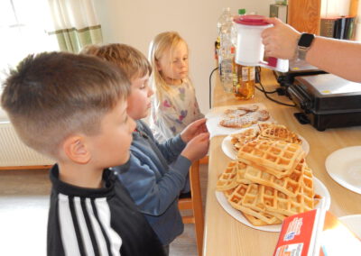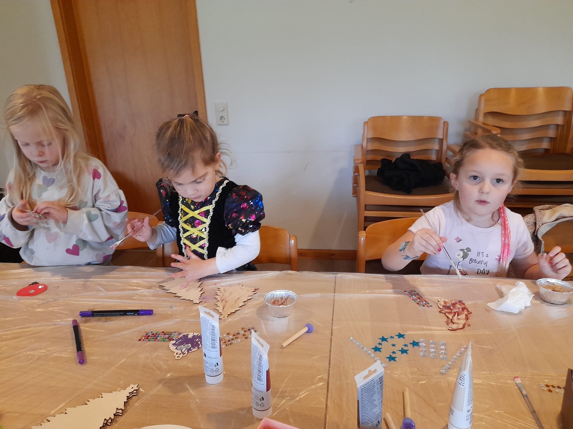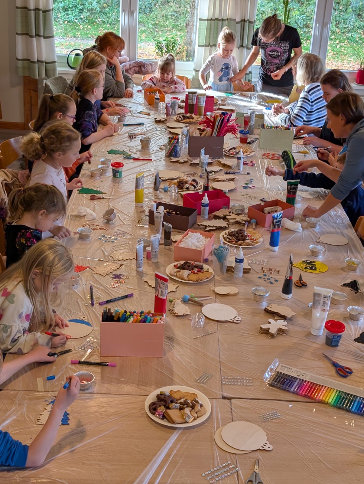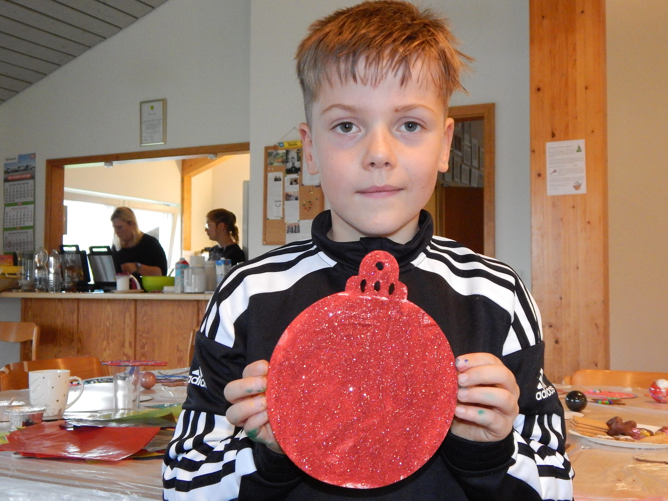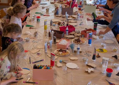 Vorgestern Nachmittag begann im Paleg die Vorweihnachtszeit: Im Duft frischer Waffeln und mit weihnachtlicher Musik als Untermalung bastelten 20 Kinder mit einigen Müttern an neuer Dekoration für den gemeindlichen Weihnachtsbaum beim Gasthof „Zum goldenen Stern“.
